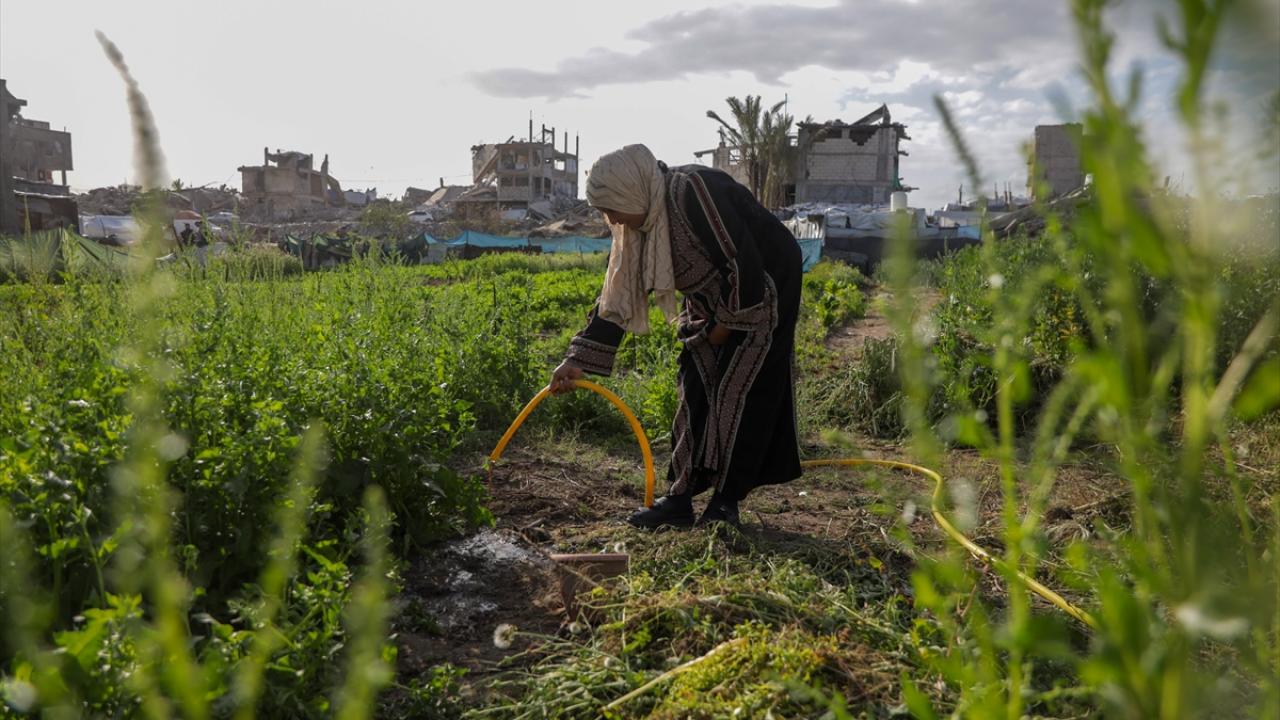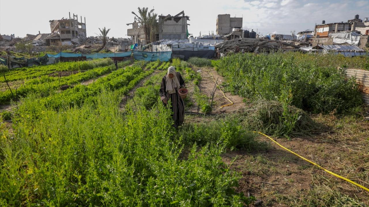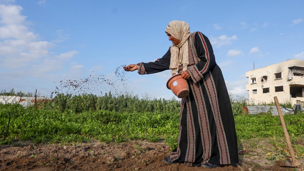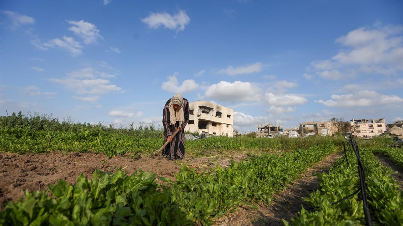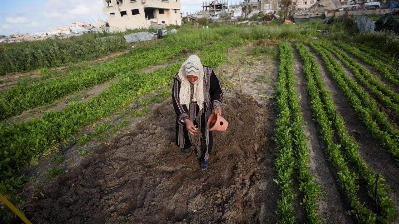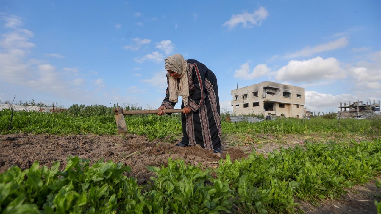 İsrail saldırıları sonucu tarım arazilerinin büyük ölçüde tahribata uğradığı Gazze Şeridi’nin kuzeyindeki Cibaliye en-Nezle bölgesinde, 60 yaşındaki Filistinli Susen el-Hadbe toprağını ekmeyi sürdürüyor.