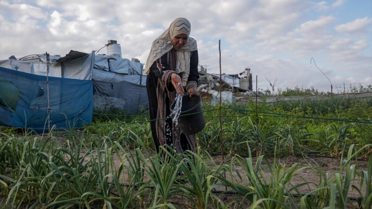 Bölgedeki yıkım ve altyapıda meydana gelen tahribat, tarımsal faaliyetlerin sürdürülebilirliği için tehdit oluştururken; gübre, tohum ve temel tarım ekipmanlarına erişimde yaşanan sıkıntılara rağmen Filistinli kadın arazisinde yetiştirdiği sebzelerle üretime tutunmaya çalışıyor.