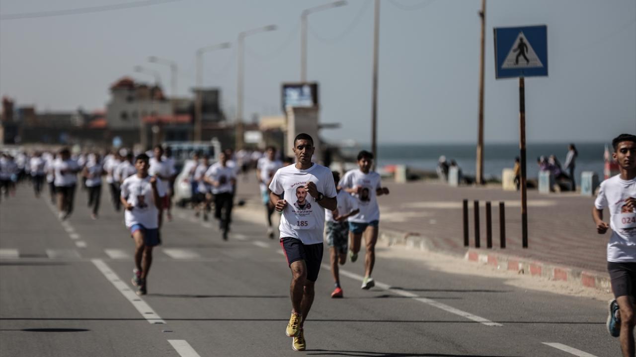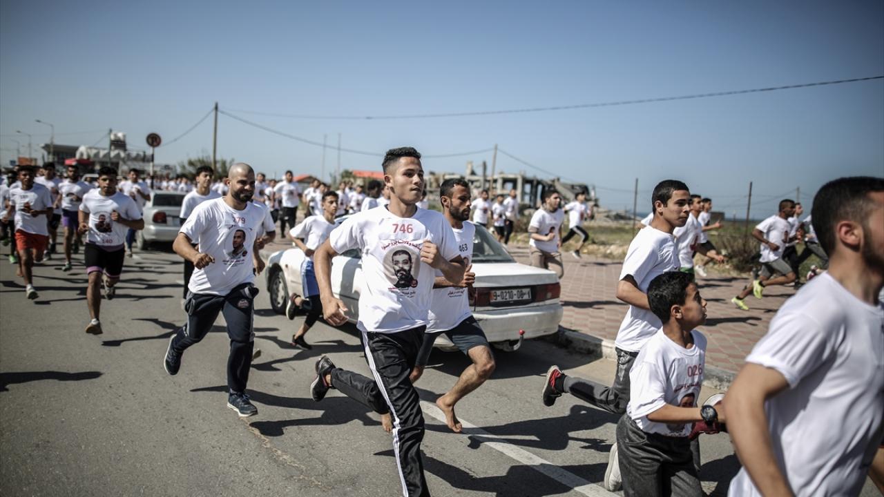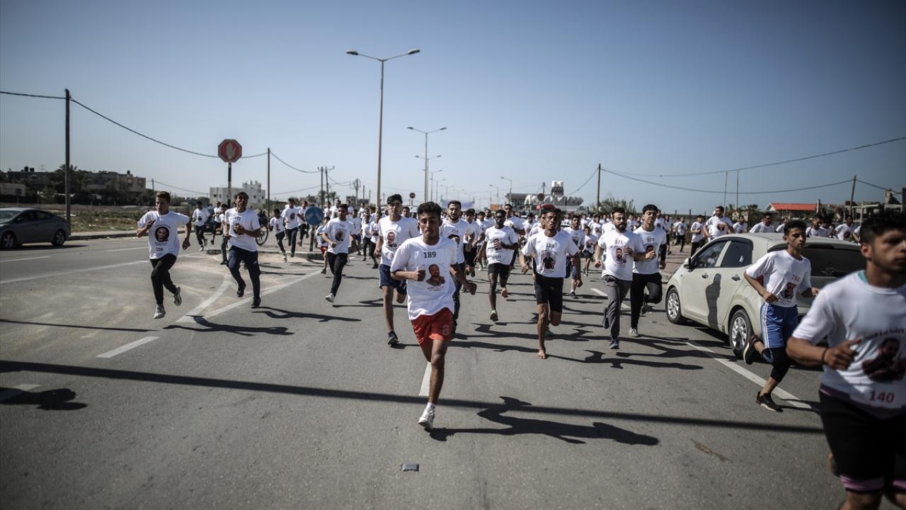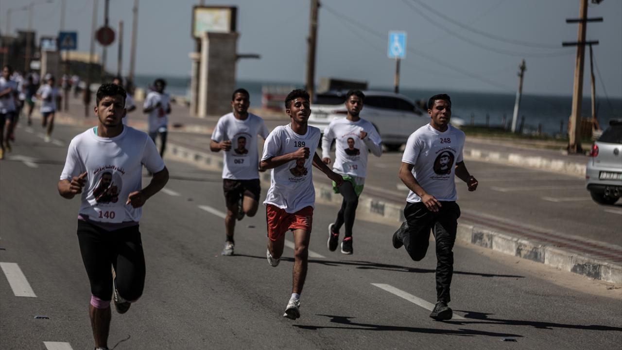 Filistin Esirler Komitesi çağrısıyla İsrail hapishanelerindeki Filistinli tutukluların durumuna dikkat çekmek için Gazze kentinde maraton düzenlendi.