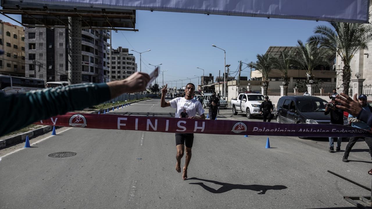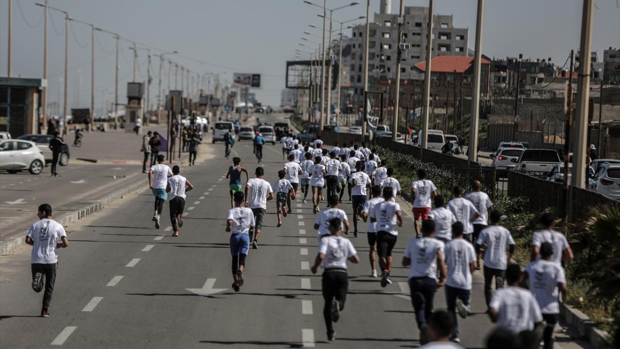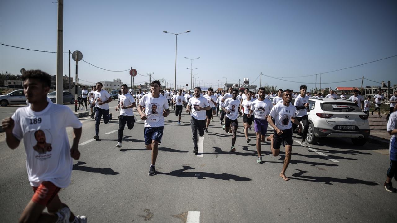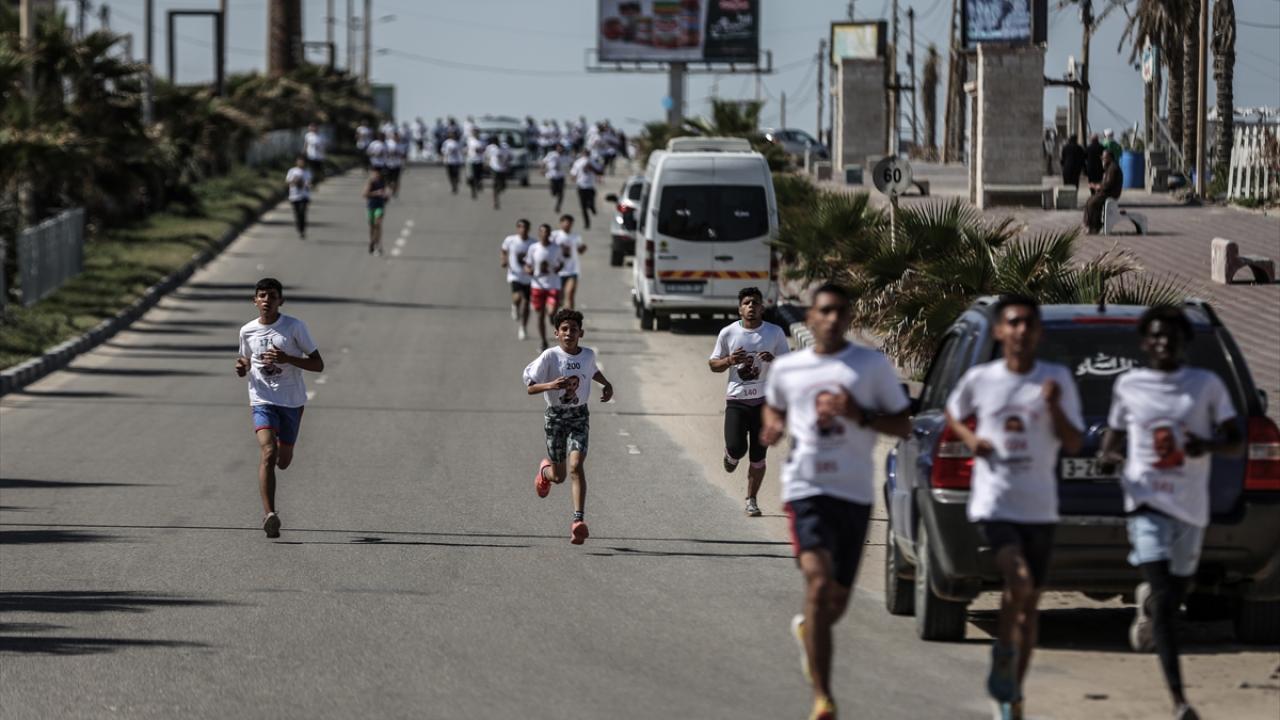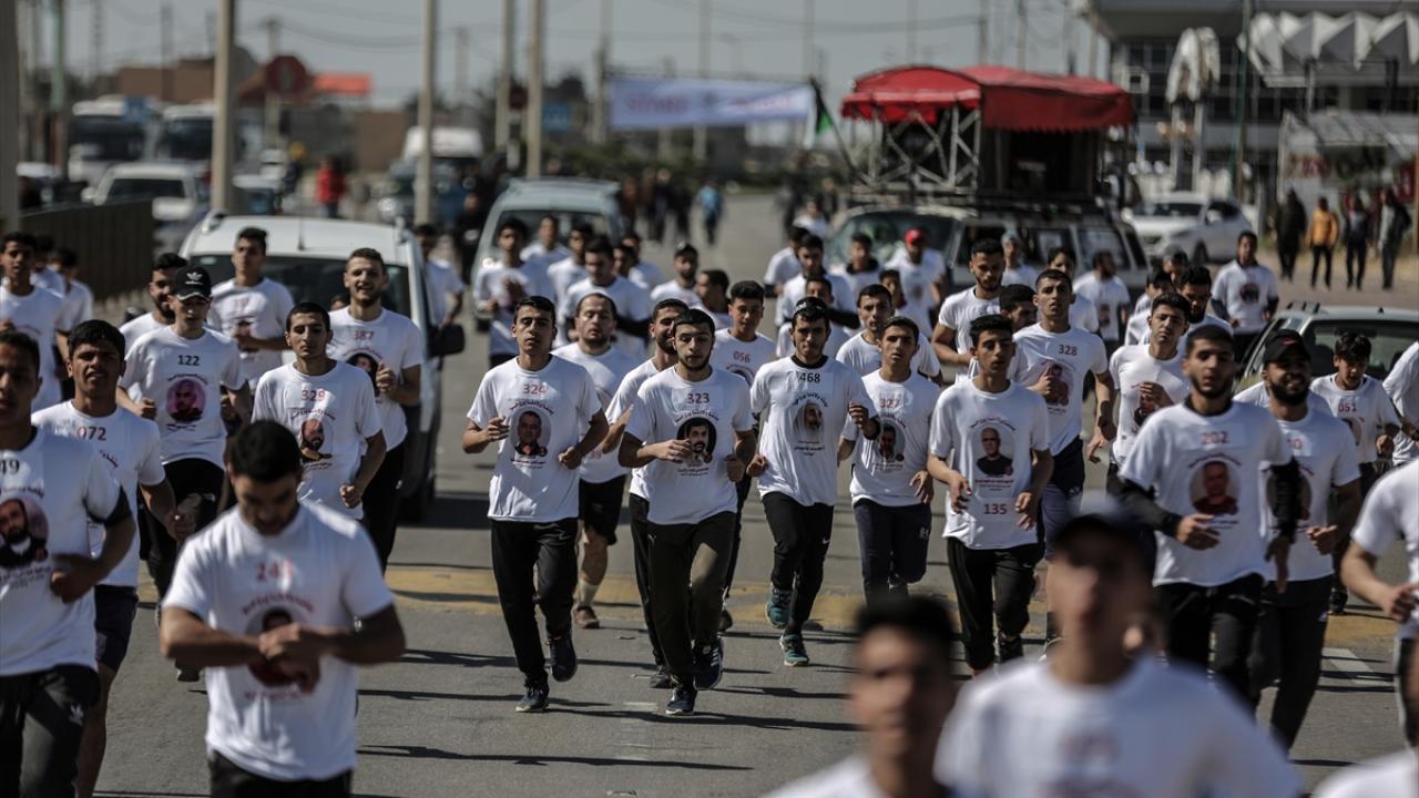 Filistin Esirler Komitesi çağrısıyla İsrail hapishanelerindeki Filistinli tutukluların durumuna dikkat çekmek için Gazze kentinde maraton düzenlendi.