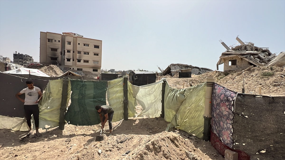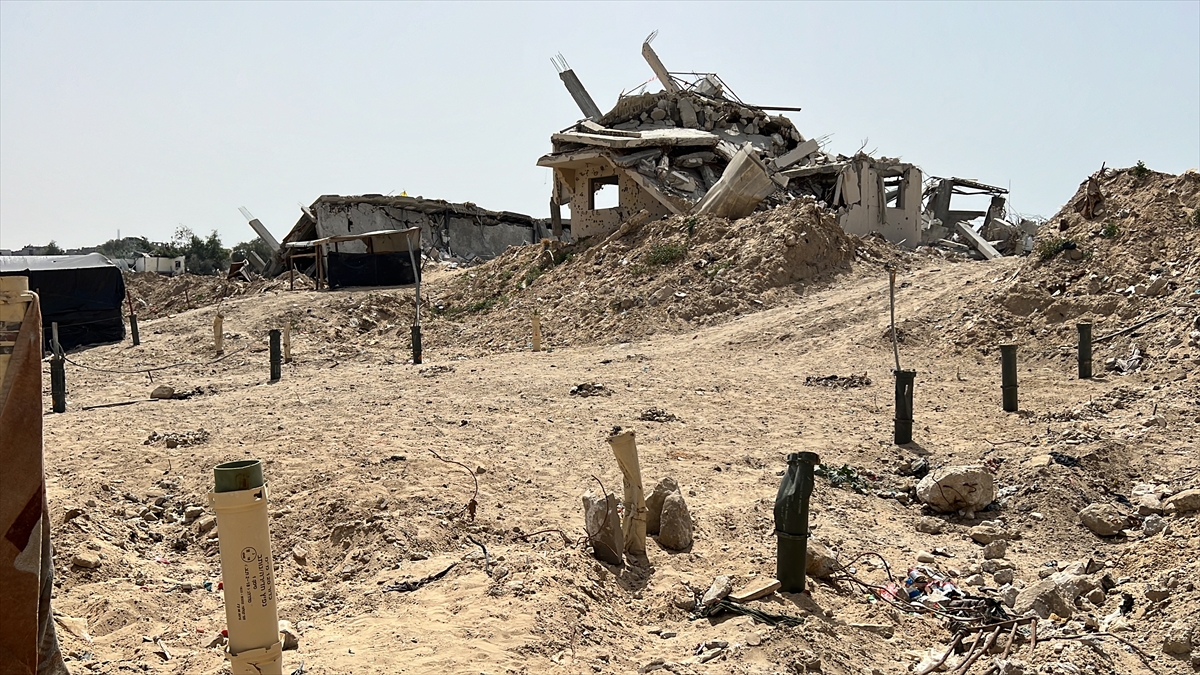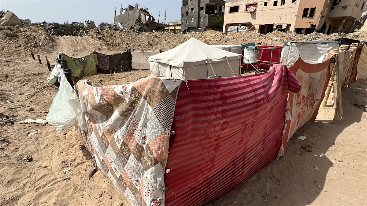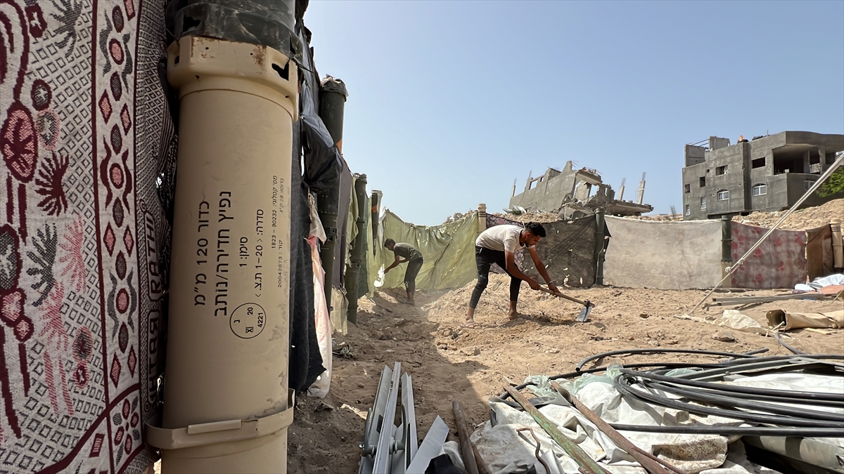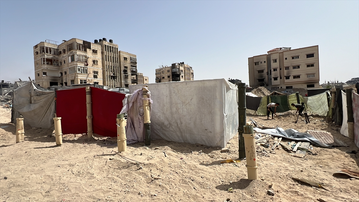 İsrail ordusunun büyük yıkım bırakarak çekildiği Gazze'nin güneyindeki Han Yunus'a dönen Filistinliler, harabe halindeki evlerle karşılaştı. Bölgede barınmak isteyen Filistinli Mikdad ailesi, İsrail ordusunun saldırılarda kullandığı füzelerin kalıntılarını toplayarak çadır yapıyor.
