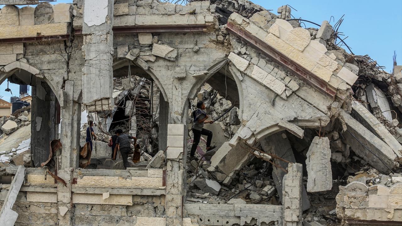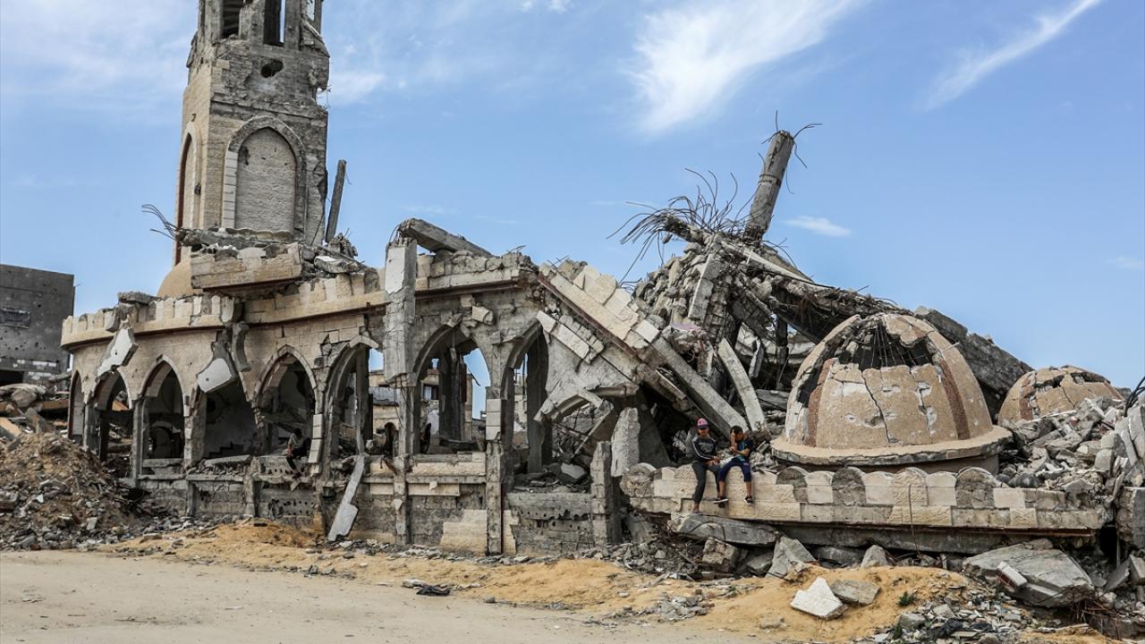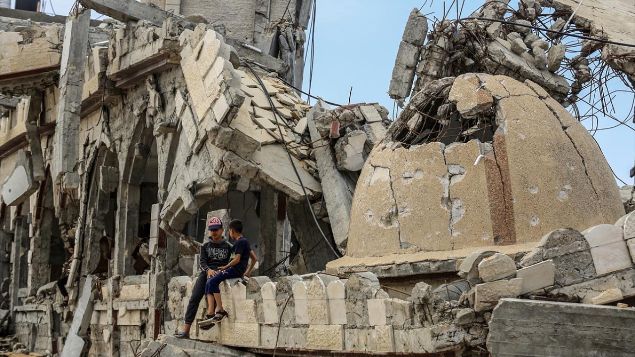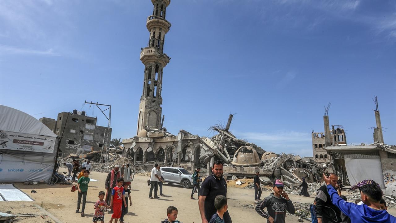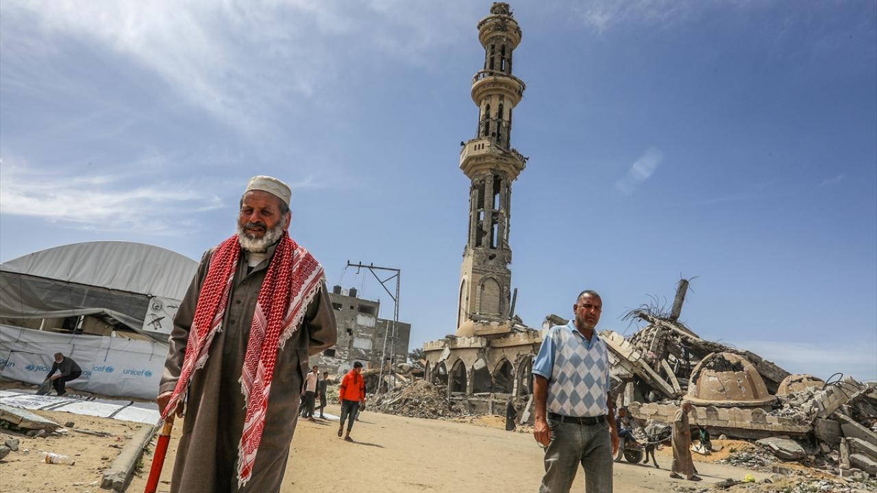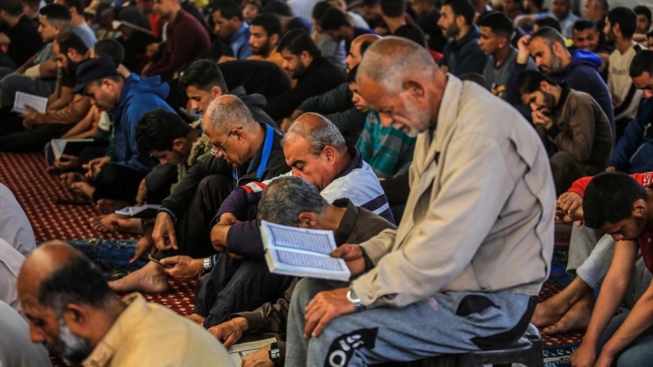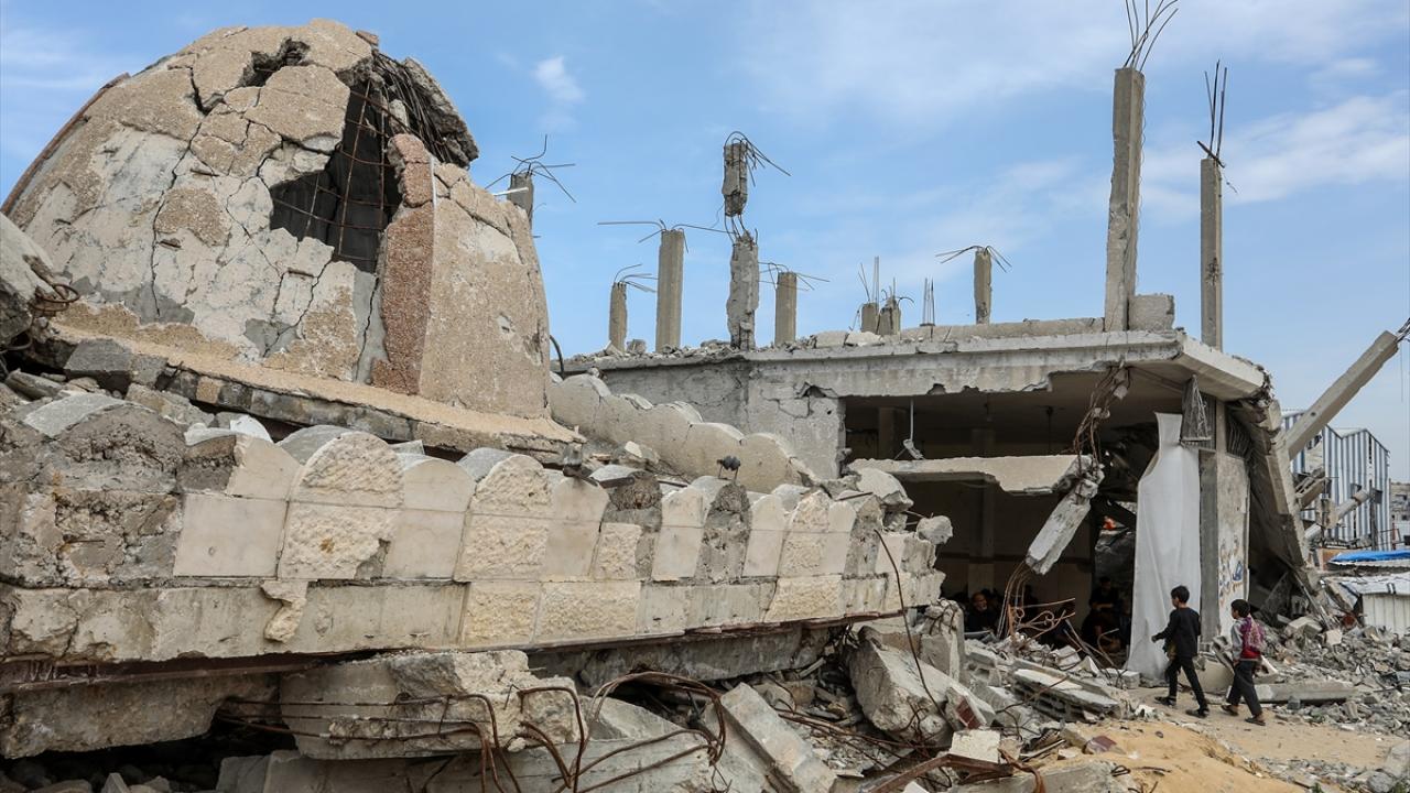 Gazze Şeridi'nin güneyinde yer alan Han Yunus kentindeki Filistinliler, İsrail saldırısında ağır hasar gören Bilal bin Rabah Camii'de ramazan ayının son cuma namazını kıldı.