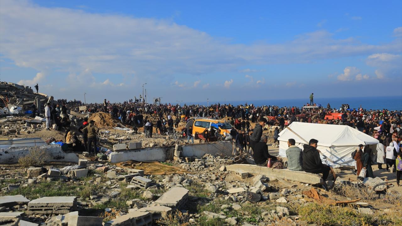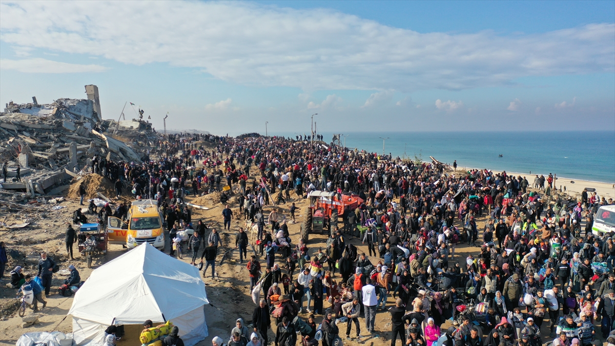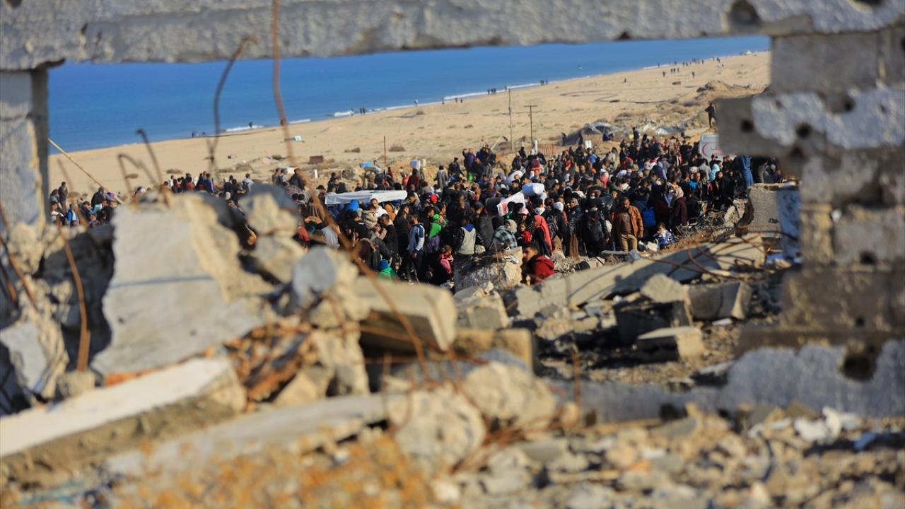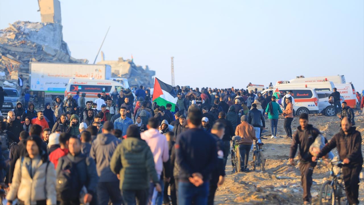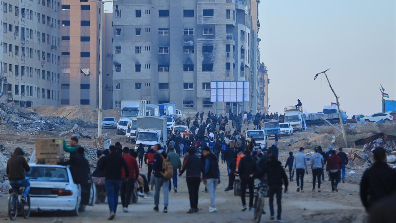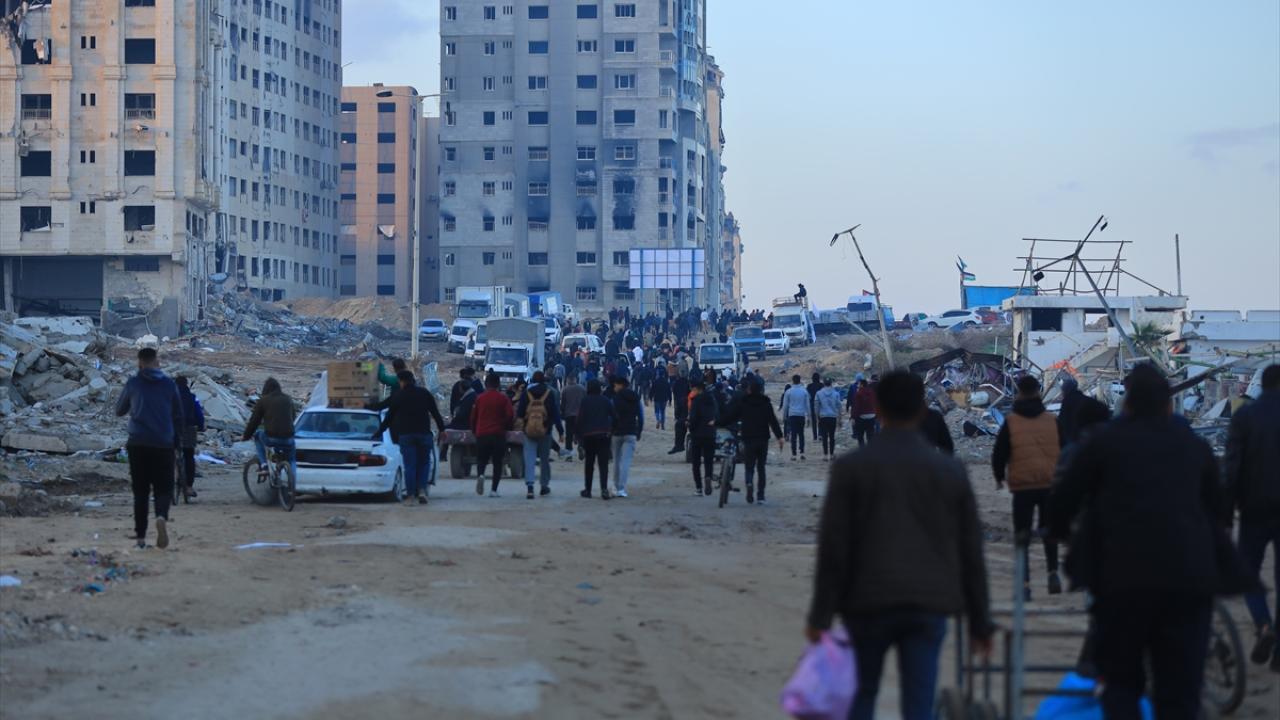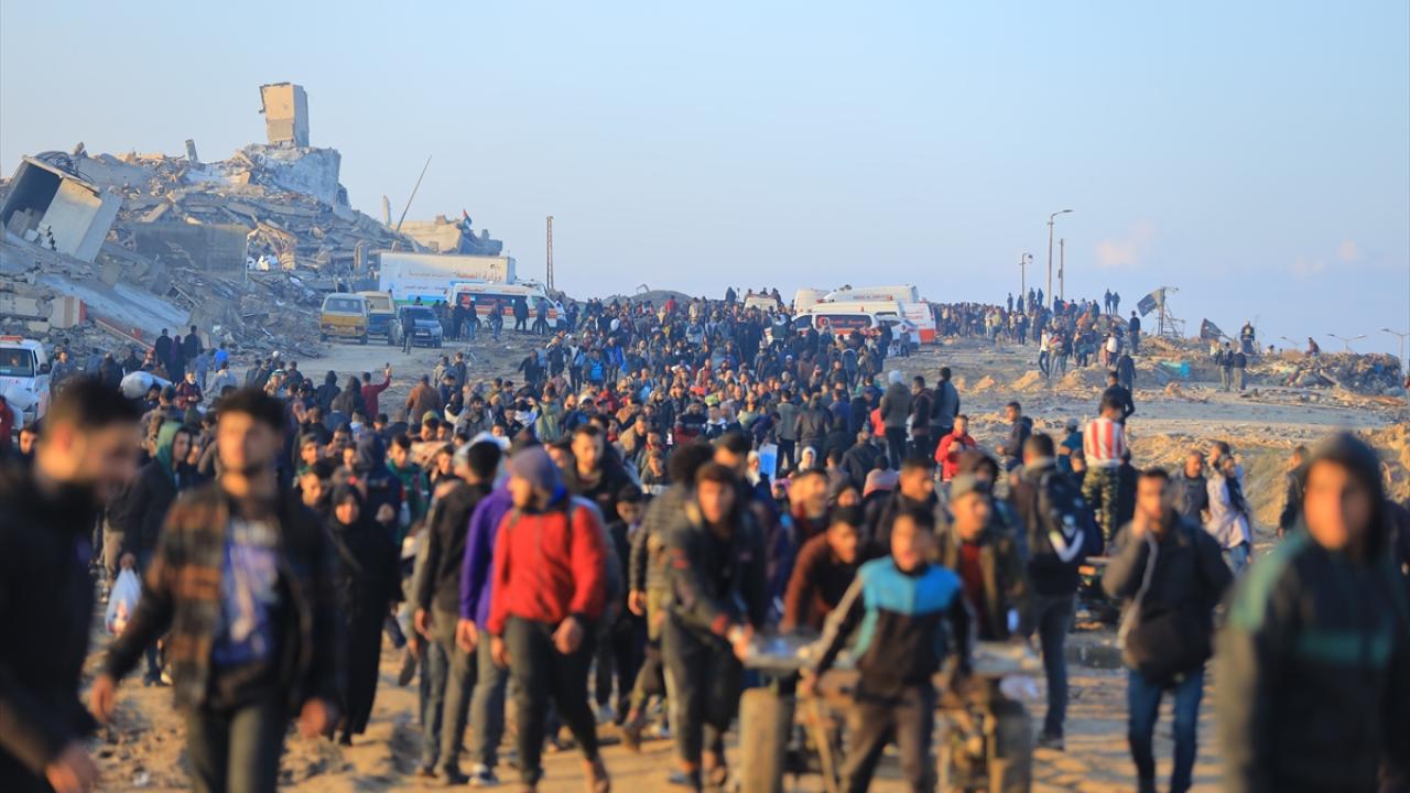 Gazze'de İsrail'in saldırıları nedeniyle zorla yerinden edilen Filistinliler güneyden kuzeydeki topraklarına yaya olarak dönüyor.