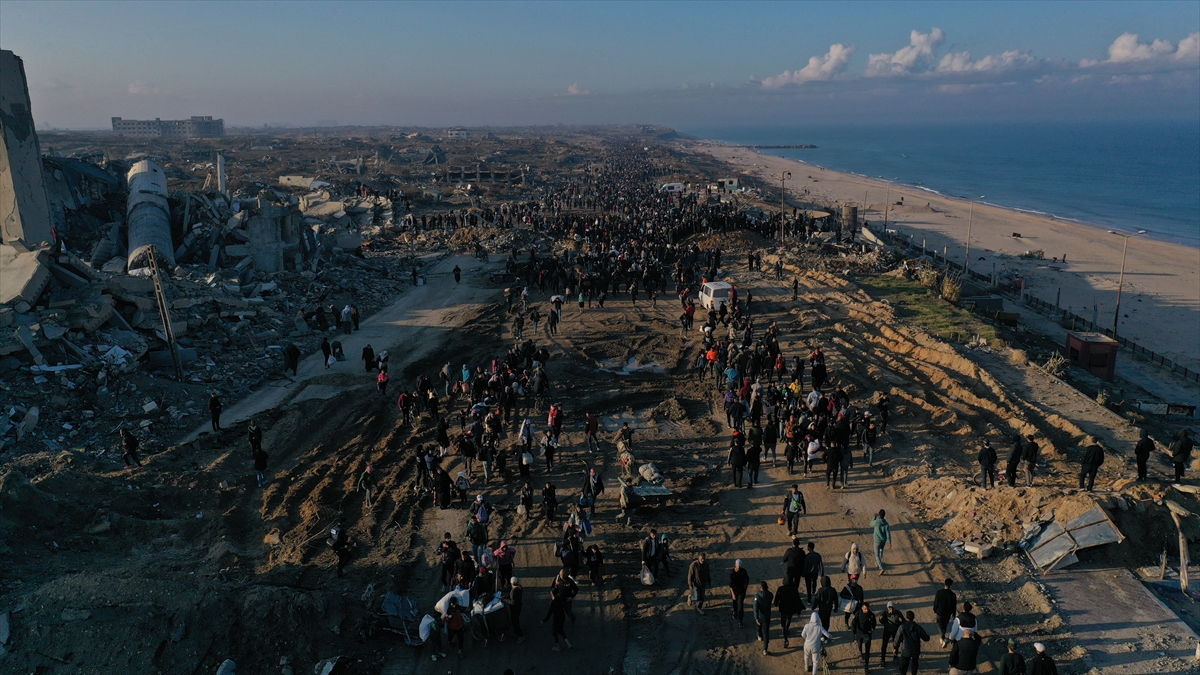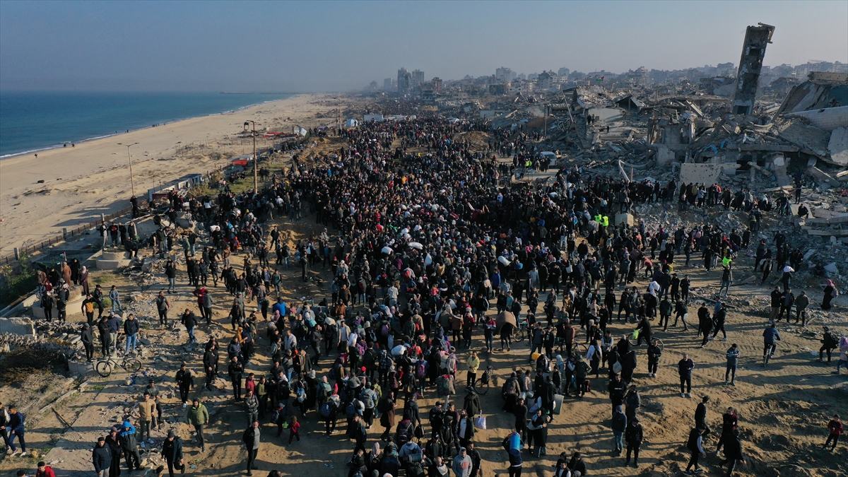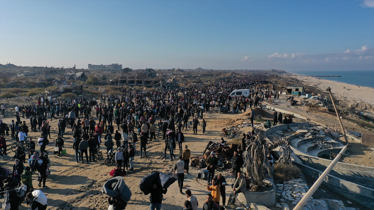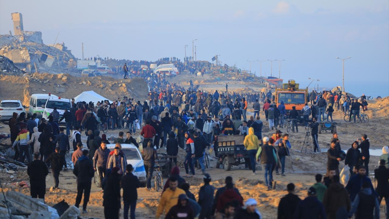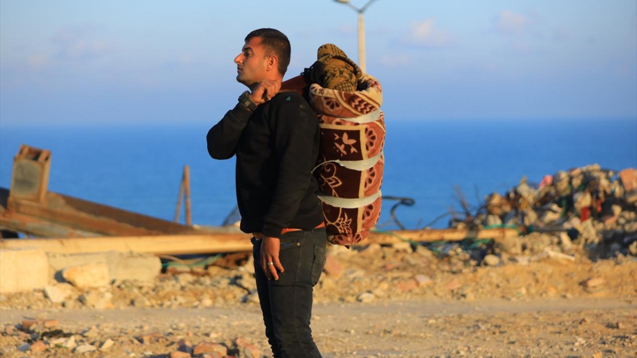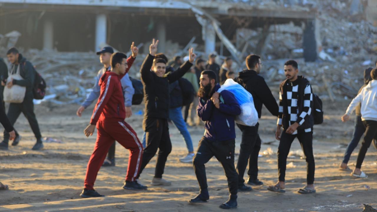 Gazze'de İsrail'in saldırıları nedeniyle zorla yerinden edilen Filistinliler güneyden kuzeydeki topraklarına yaya olarak dönüyor.