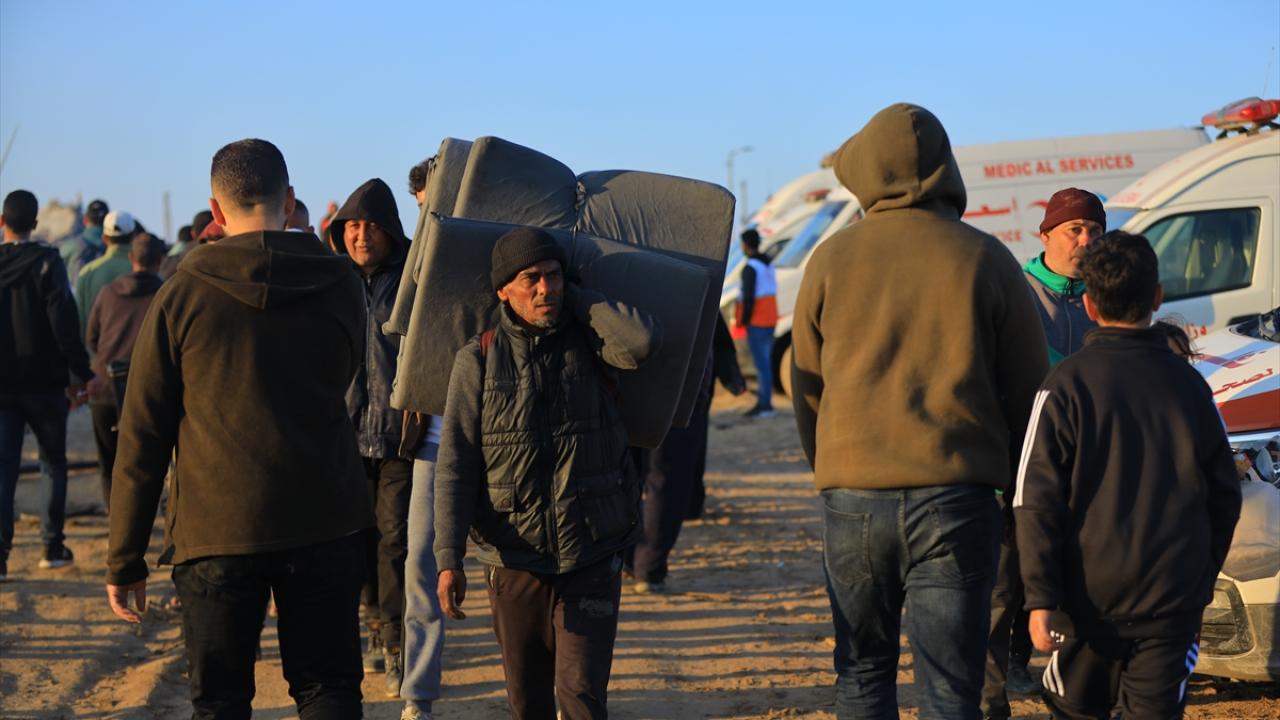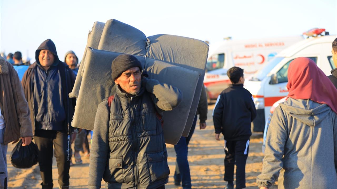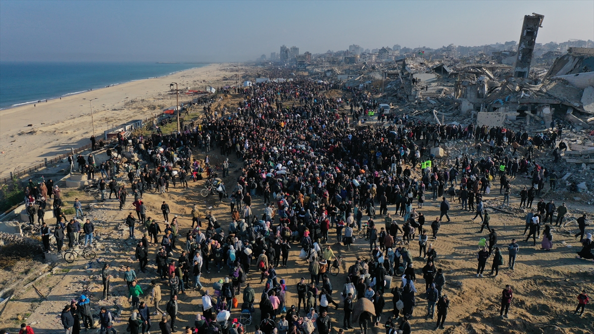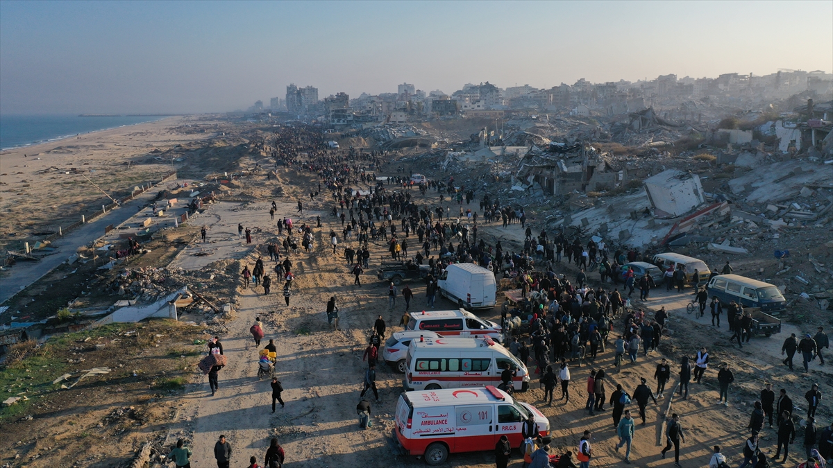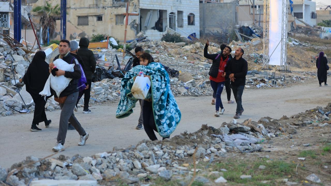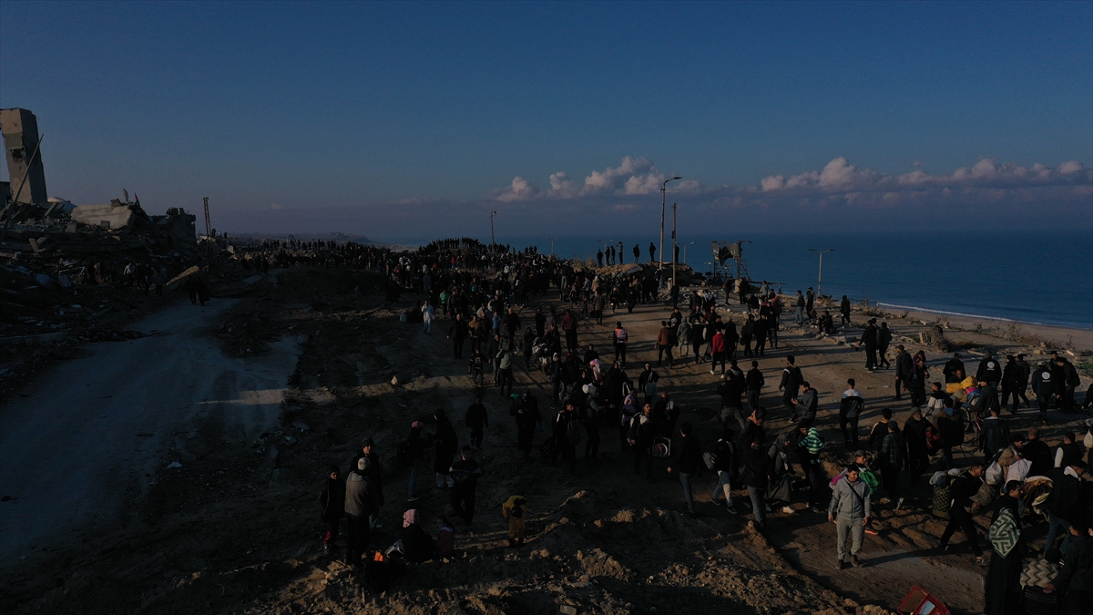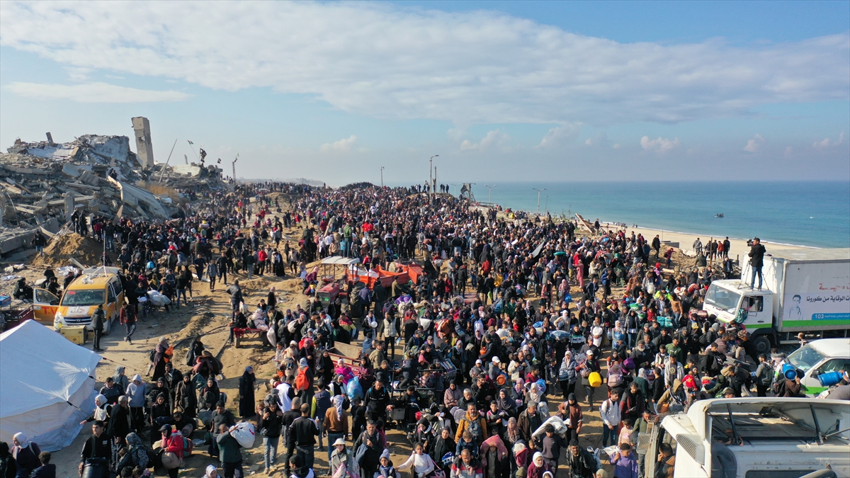Gazze'de İsrail'in saldırıları nedeniyle zorla yerinden edilen Filistinliler güneyden kuzeydeki topraklarına yaya olarak dönüyor.