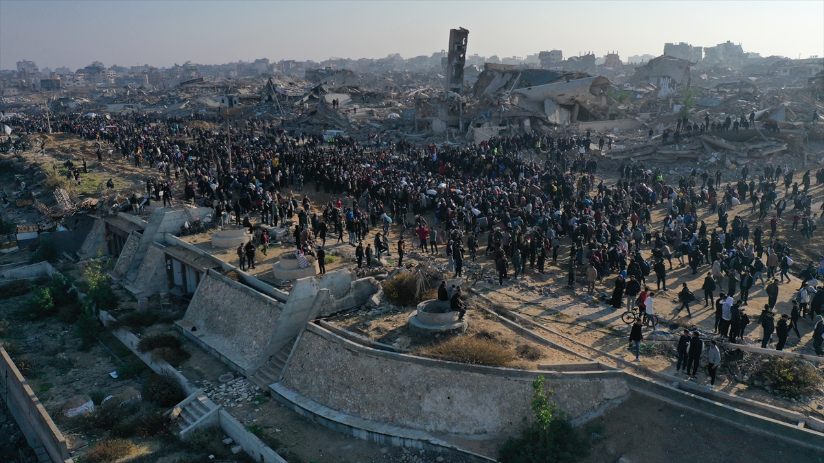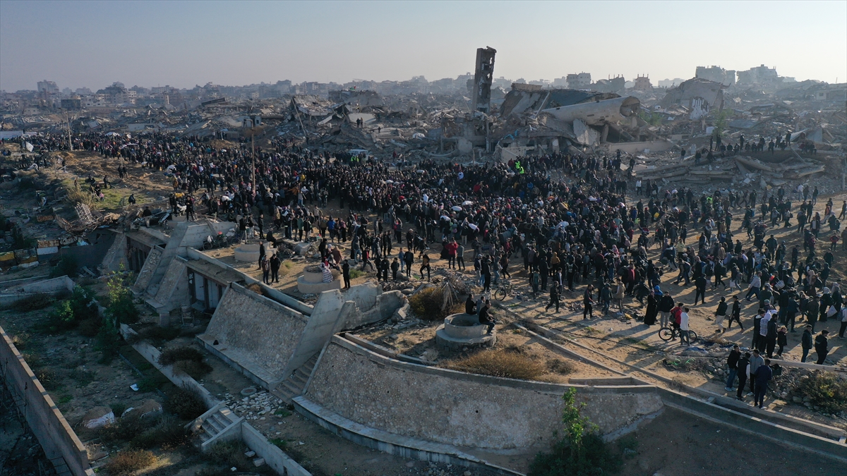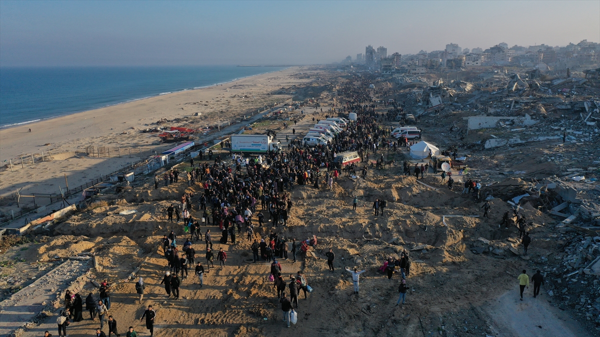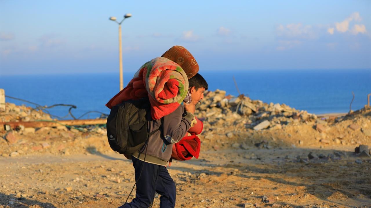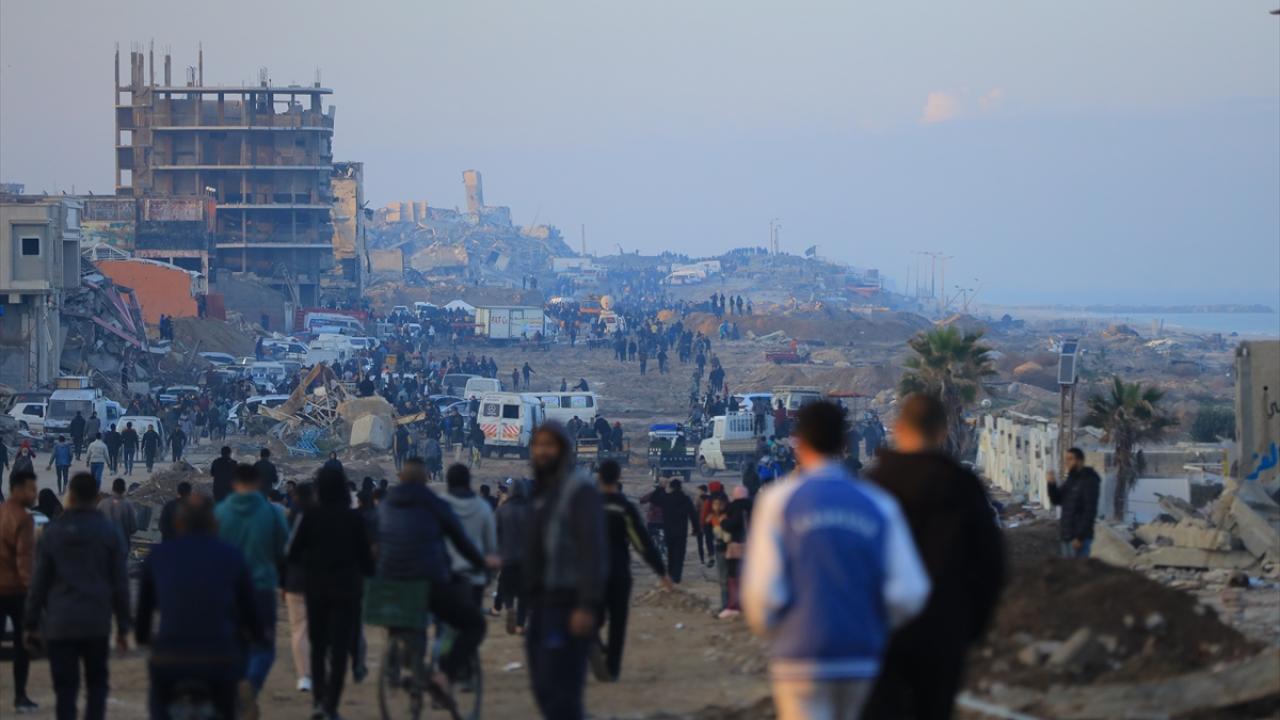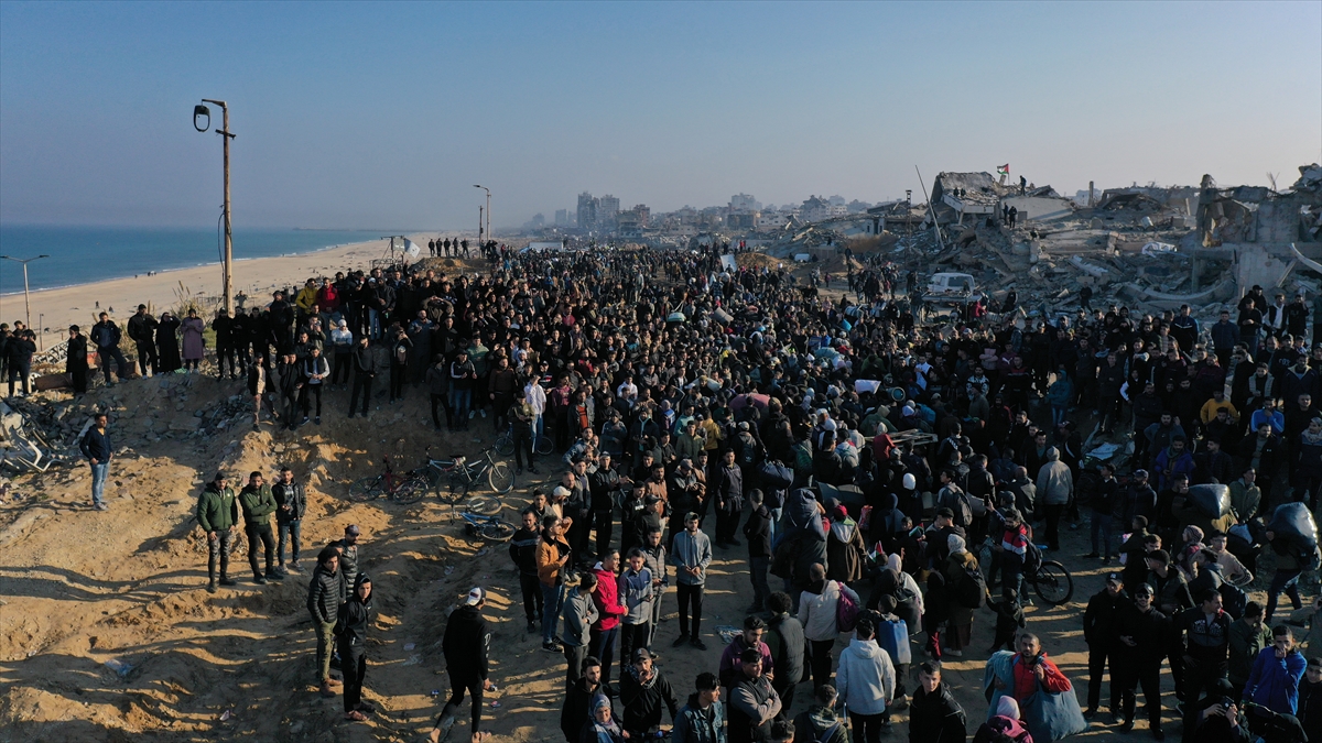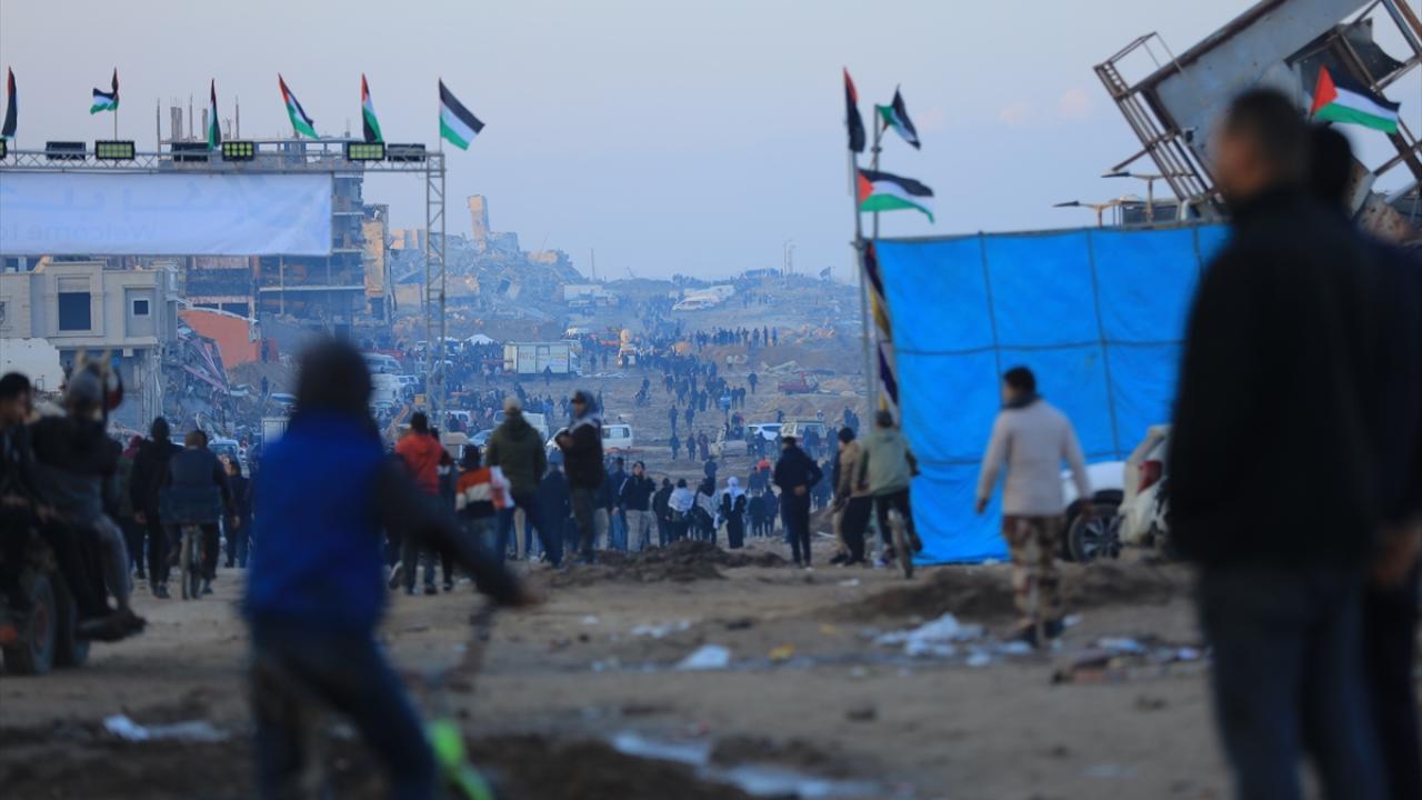 Gazze'de İsrail'in saldırıları nedeniyle zorla yerinden edilen Filistinliler güneyden kuzeydeki topraklarına yaya olarak dönüyor.