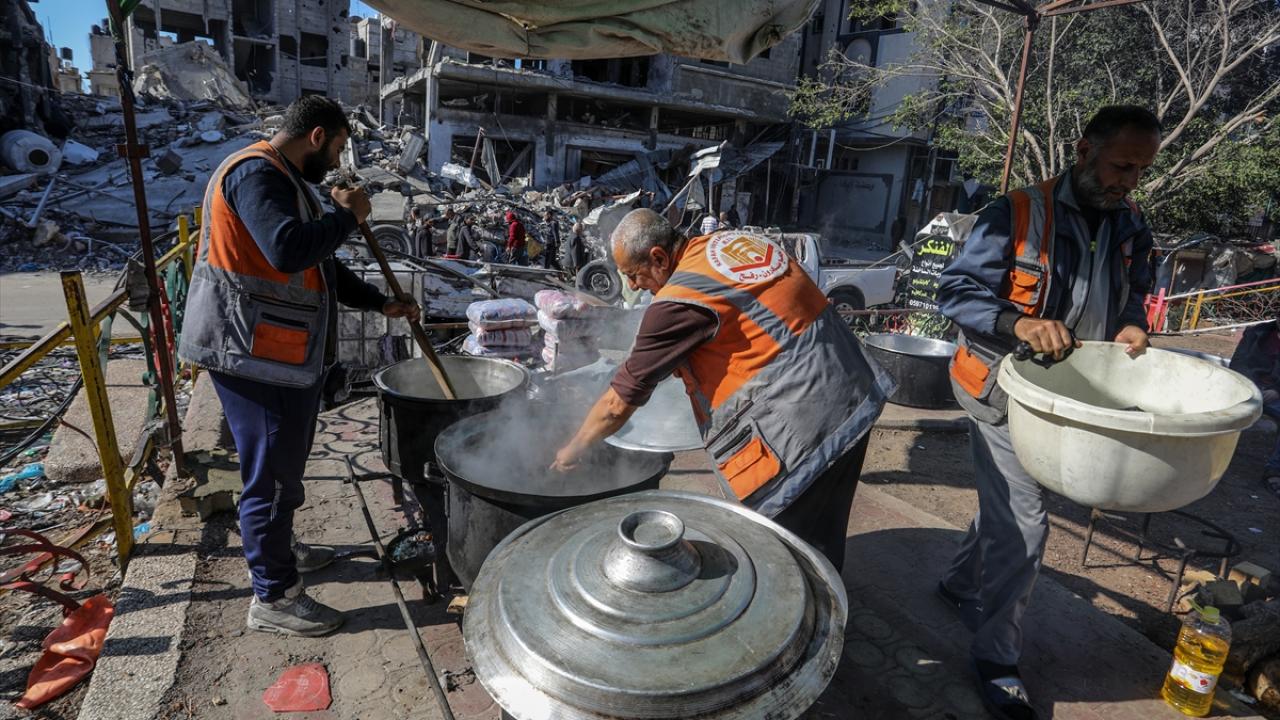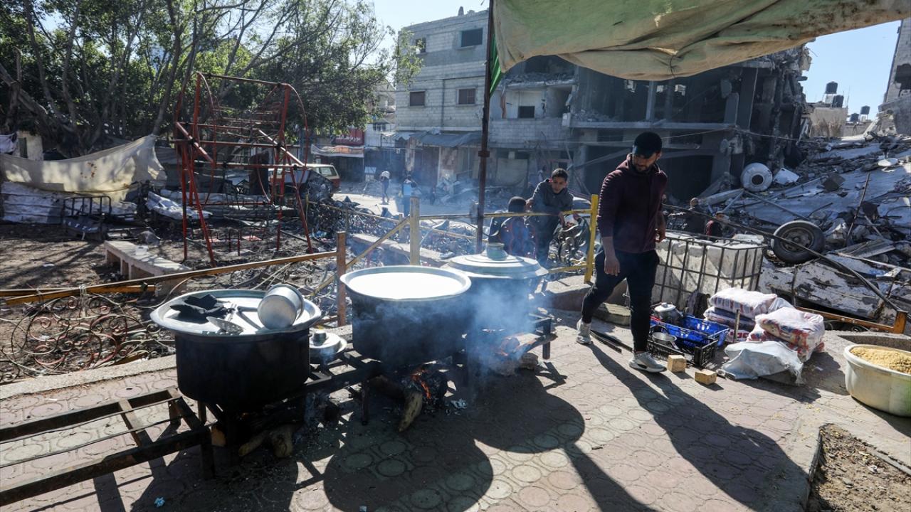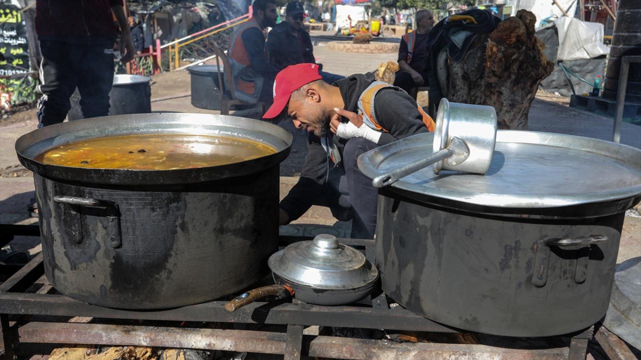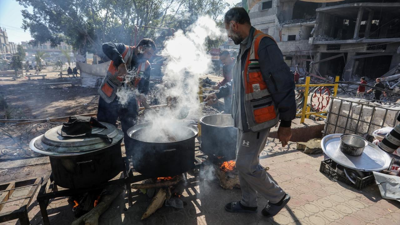 Gazze`nin Refah kentindeki bazı gönüllü Filistinliler, İsrail saldırıları nedeniyle kentin kuzey ve orta kesimlerinden güneye göç etmek zorunda kalan ailelere yemek hazırladı.