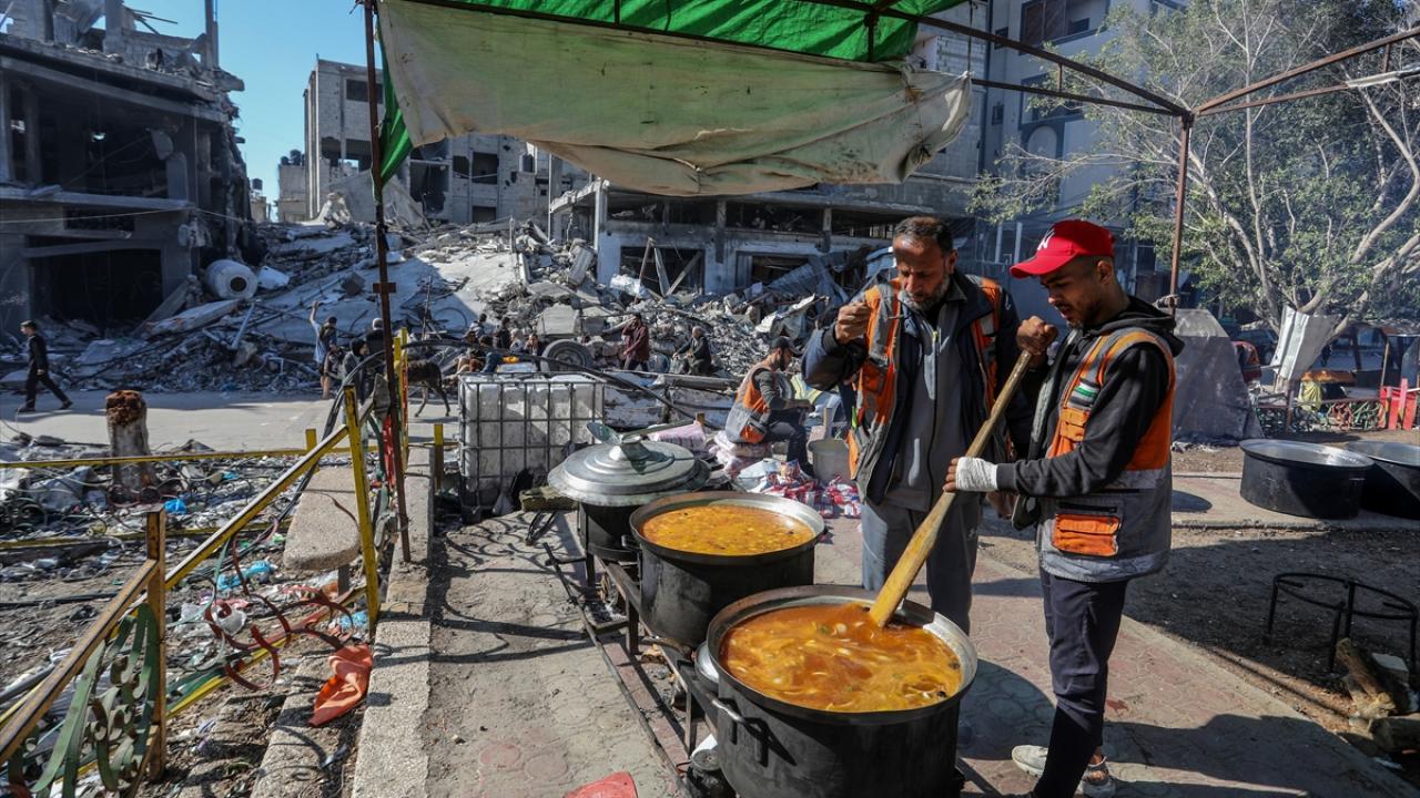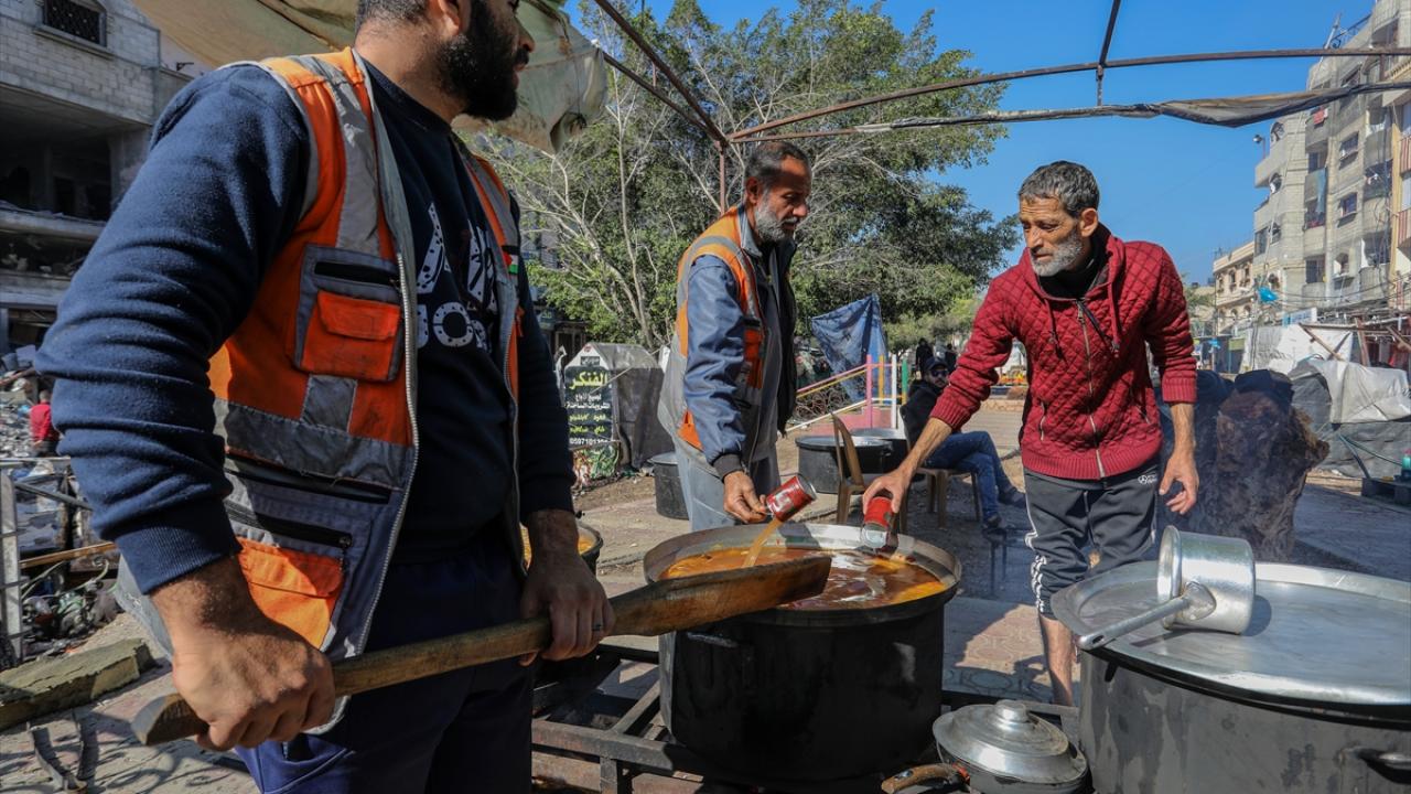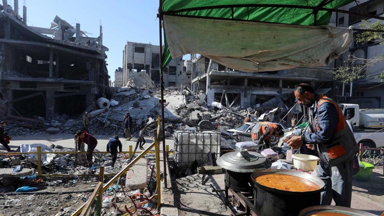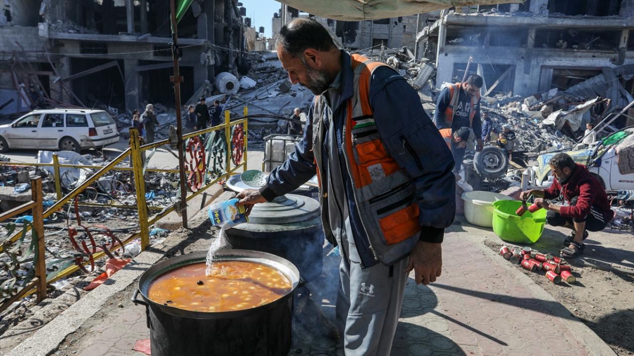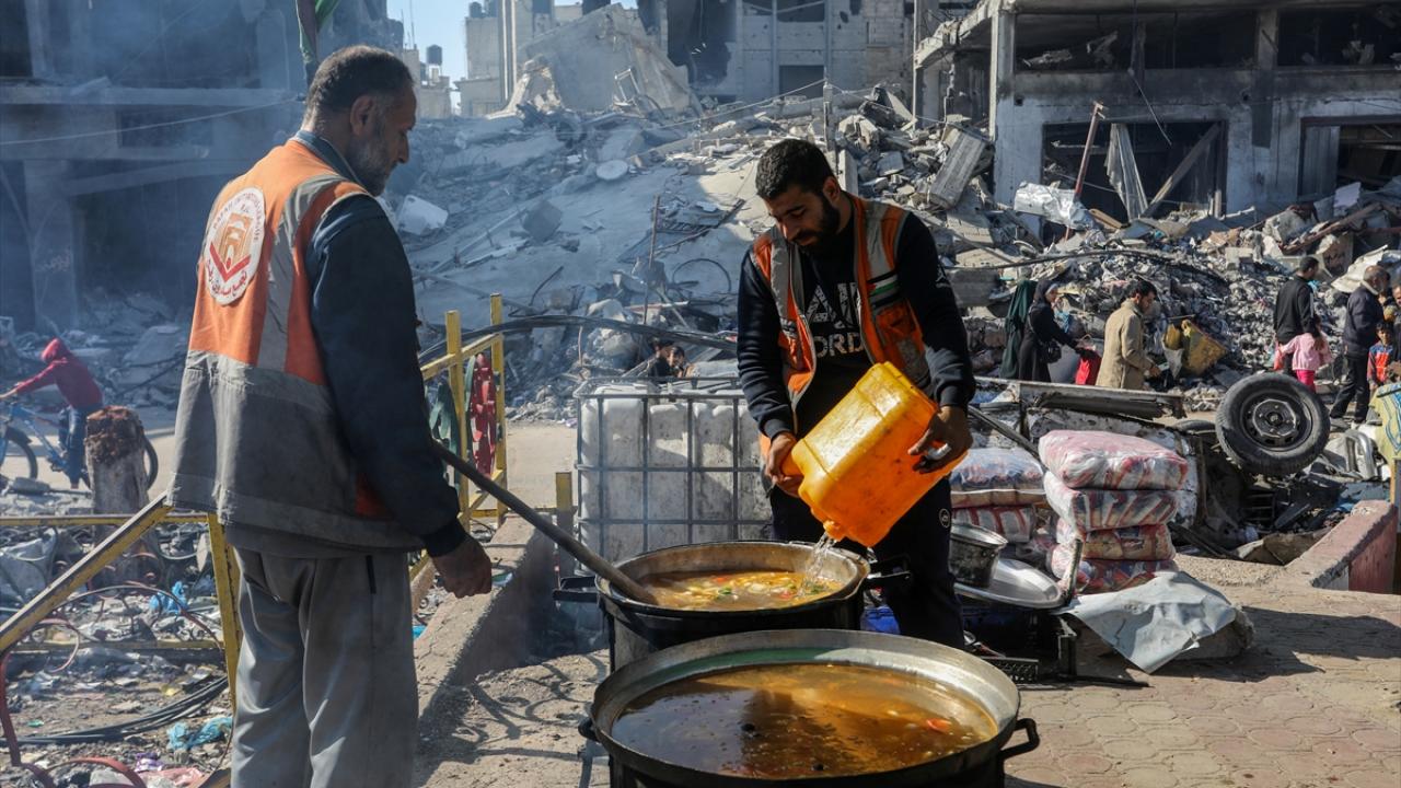 Gazze`nin Refah kentindeki bazı gönüllü Filistinliler, İsrail saldırıları nedeniyle kentin kuzey ve orta kesimlerinden güneye göç etmek zorunda kalan ailelere yemek hazırladı.