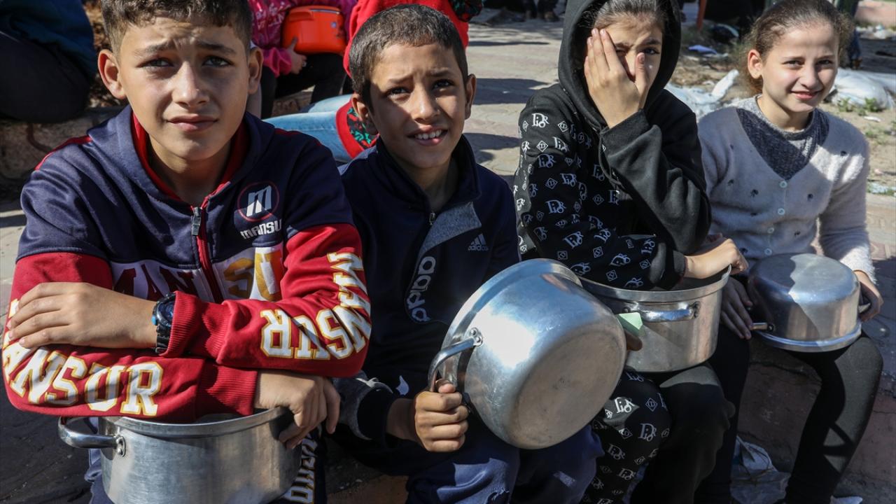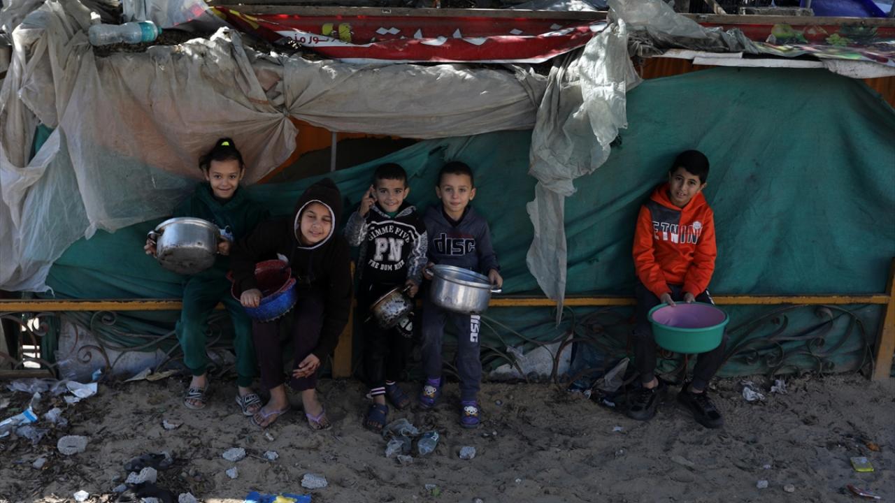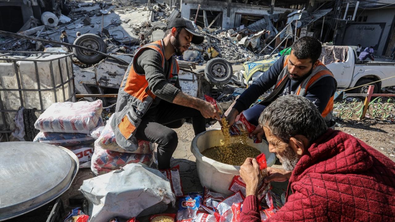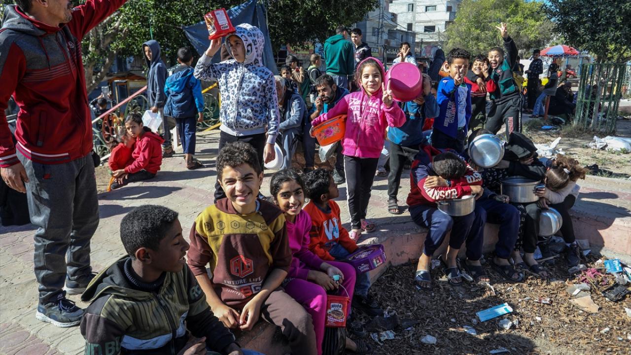 Gazze'nin güneyine göç eden ailelere yemek yardımı
