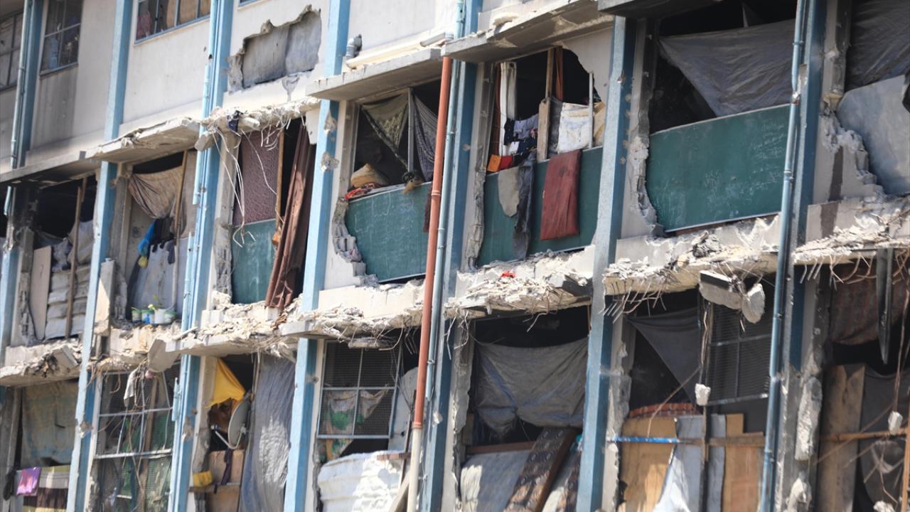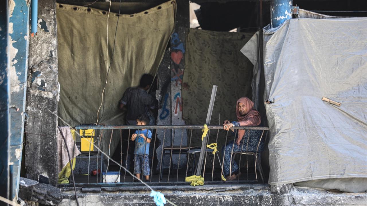 Gazze Şeridi`ndeki kuzeyinde yerinden edilen Filistinliler, kalacak yer bulamadıkları için İsrail saldırılarında yıkılan veya hasar gören okul binalarına sığınmak zorunda kaldı.