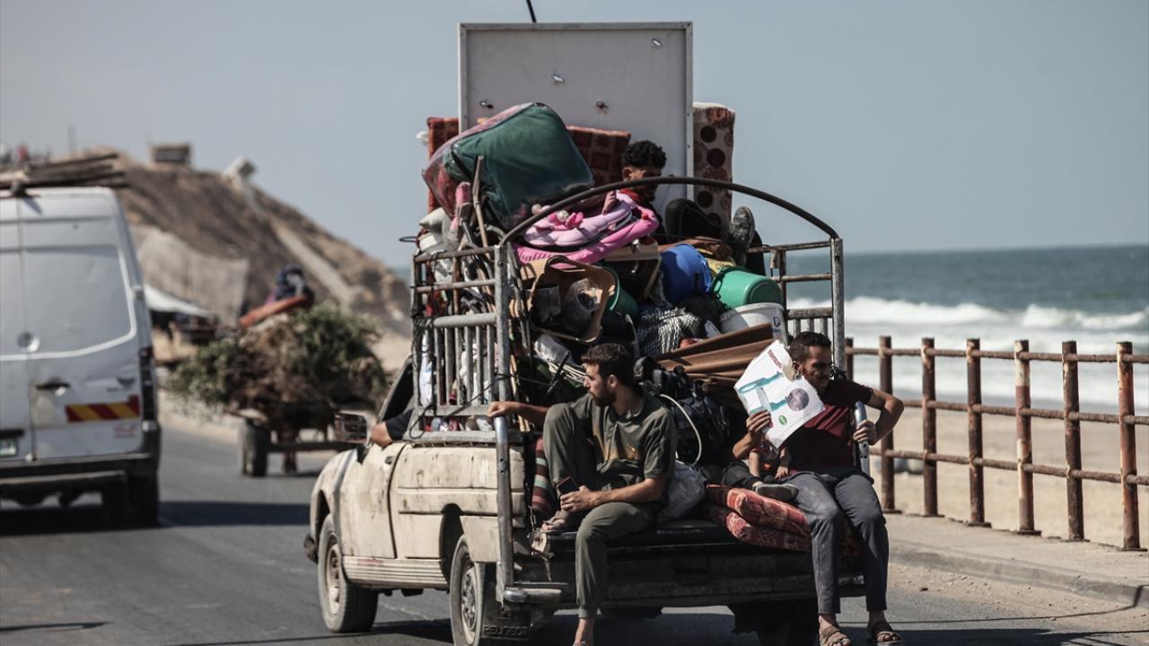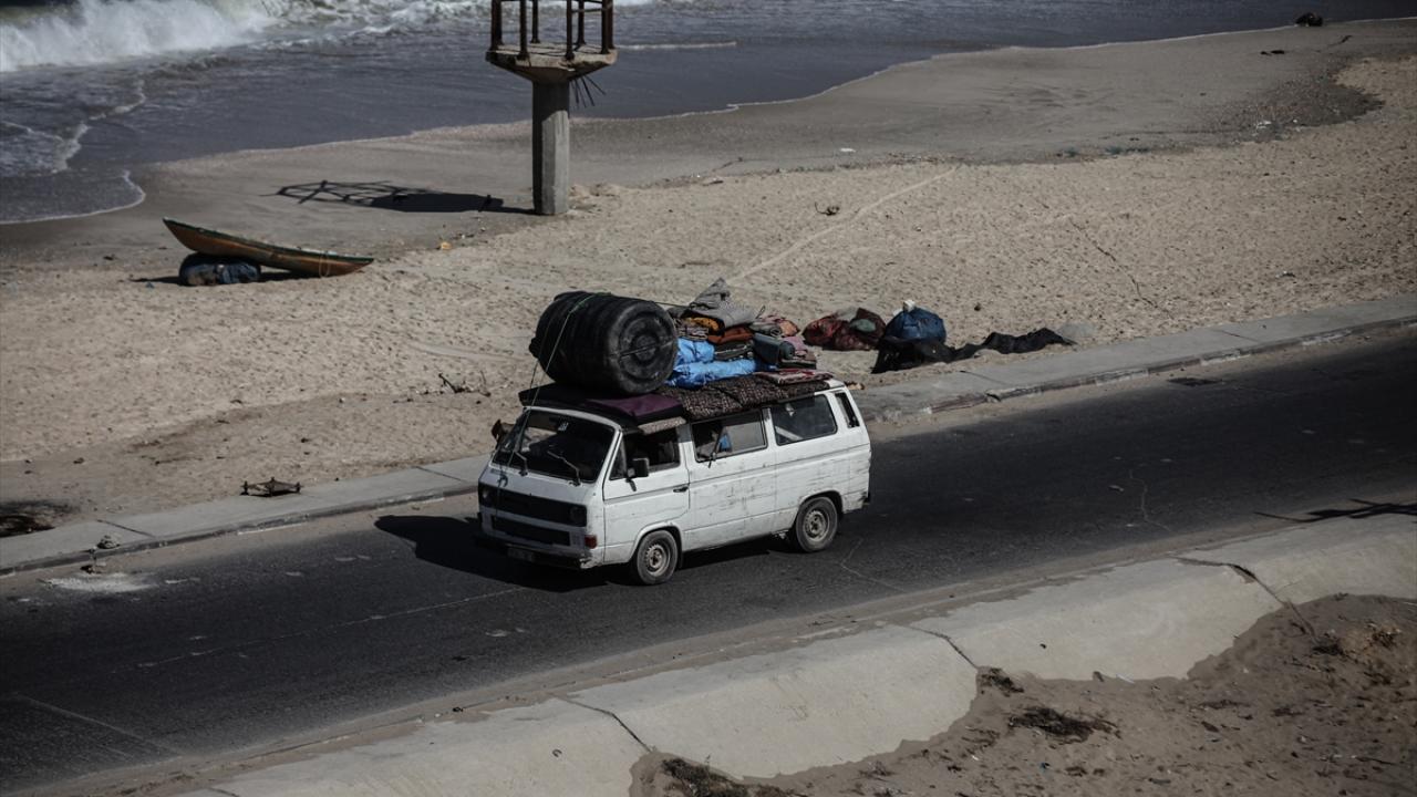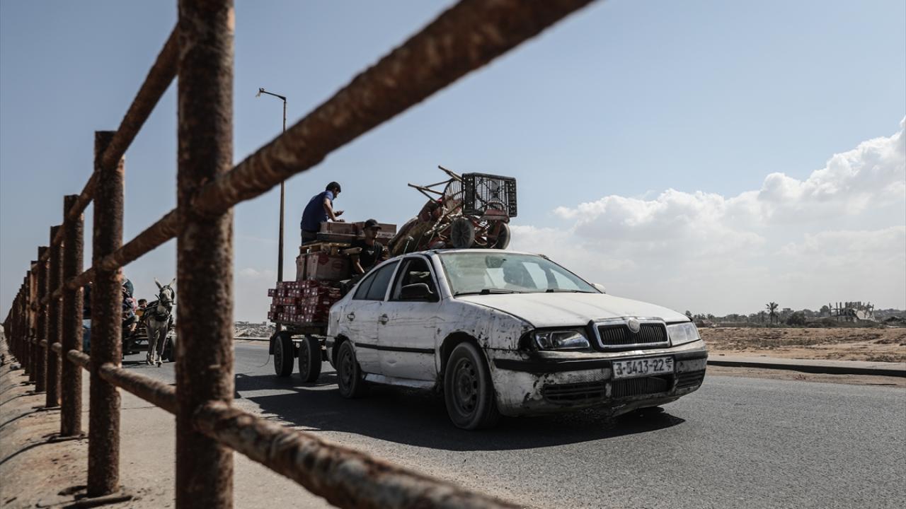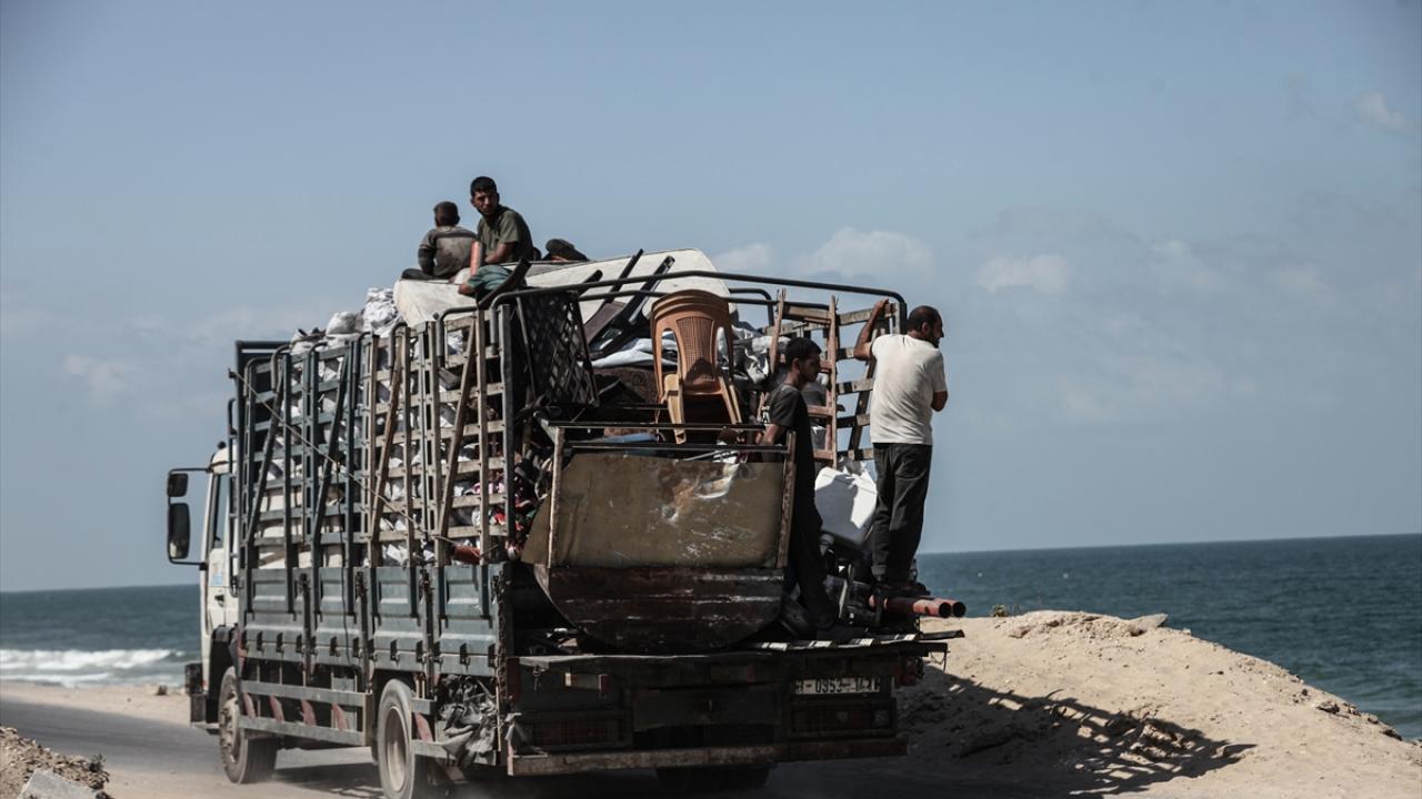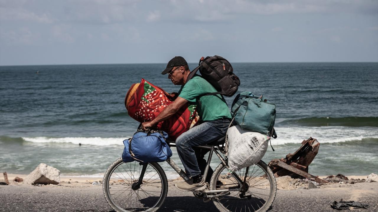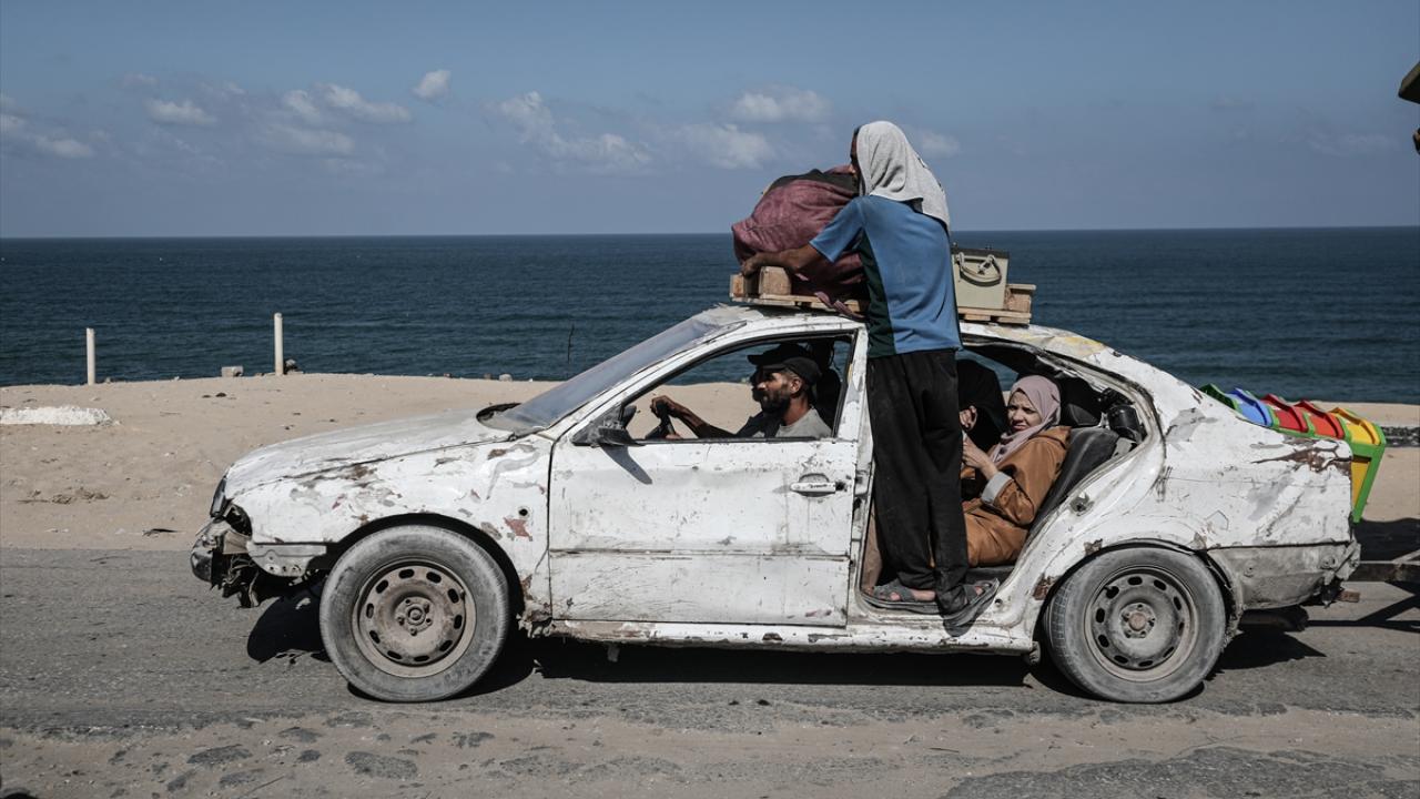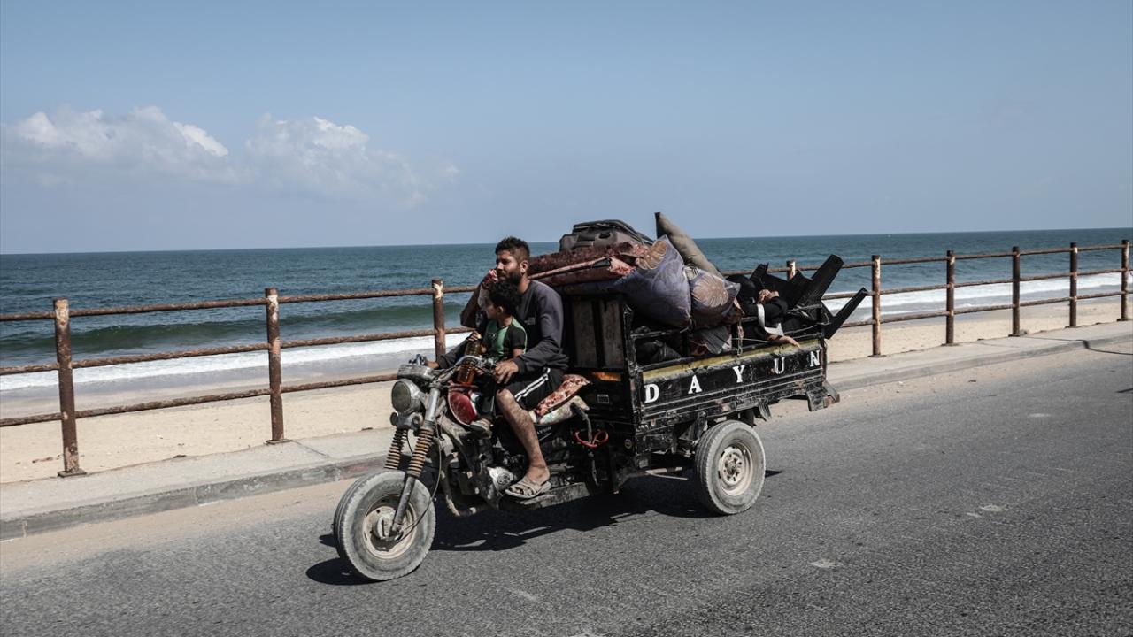 İsrail ordusunun Gazze’nin kuzeyine yönelik saldırıları nedeniyle Filistinliler, yanlarında alabildikleri eşyalarla birlikte Nuseyrat Mülteci Kampı’nın batısındaki El-Nuveyri Tepesi üzerinden orta Gazze’ye doğru göç etmeye devam ediyor.