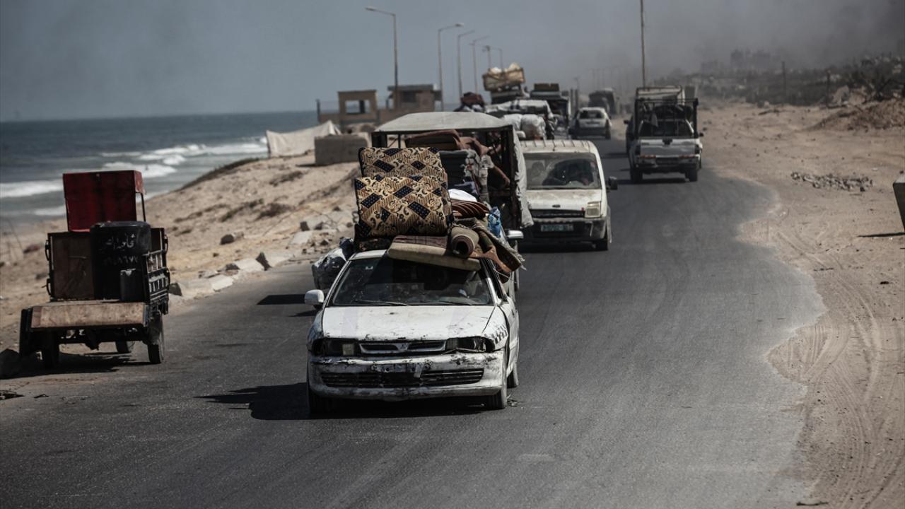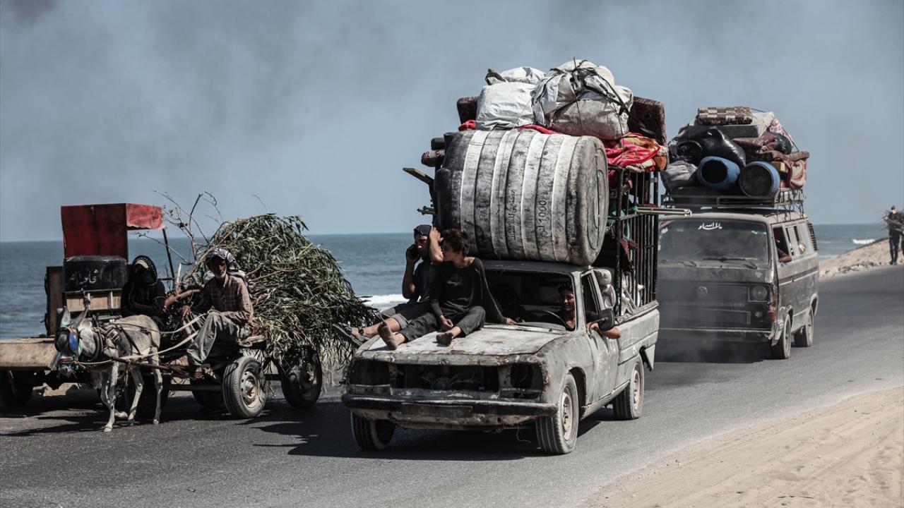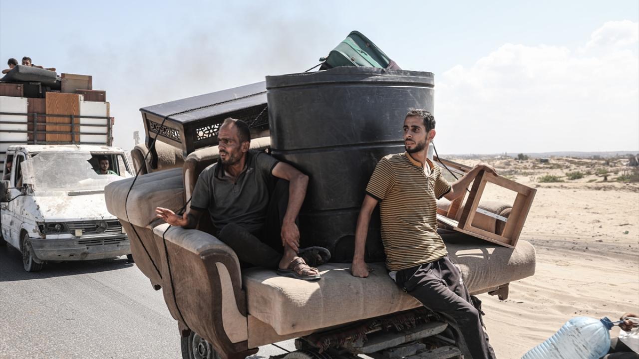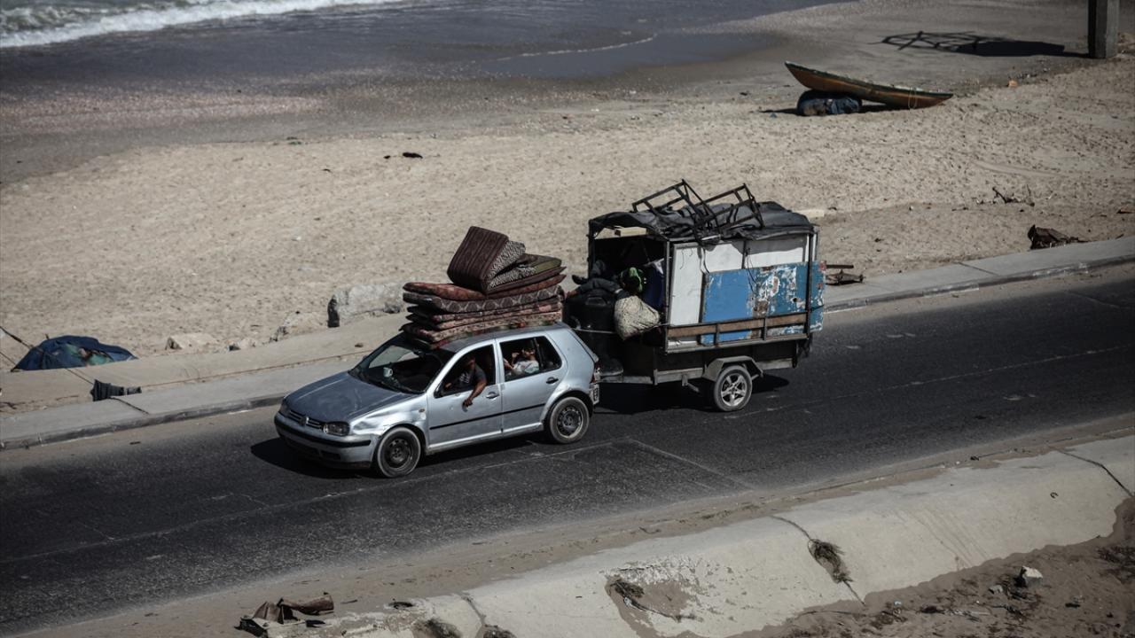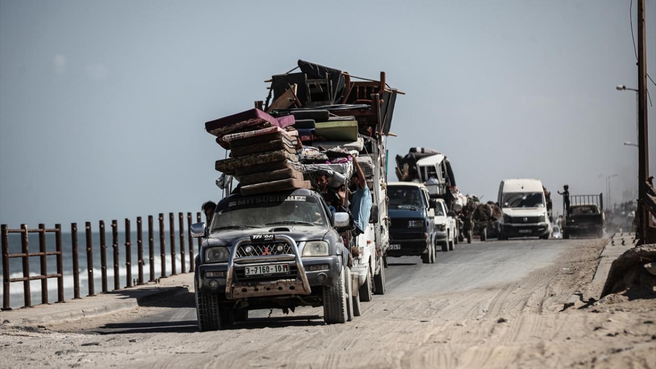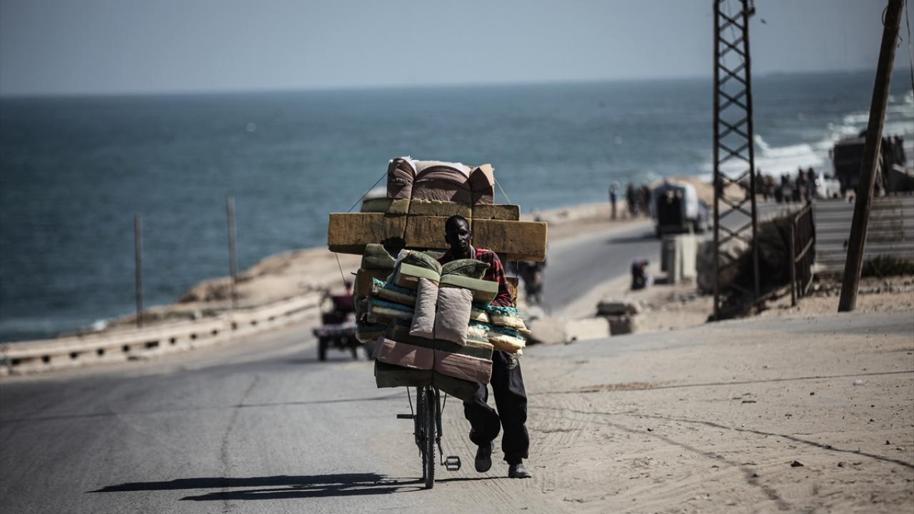 İsrail ordusunun Gazze’nin kuzeyine yönelik saldırıları nedeniyle Filistinliler, yanlarında alabildikleri eşyalarla birlikte Nuseyrat Mülteci Kampı’nın batısındaki El-Nuveyri Tepesi üzerinden orta Gazze’ye doğru göç etmeye devam ediyor.