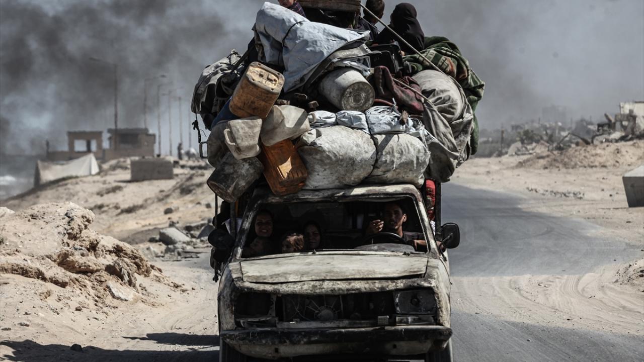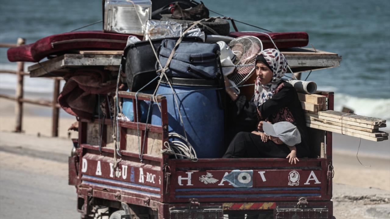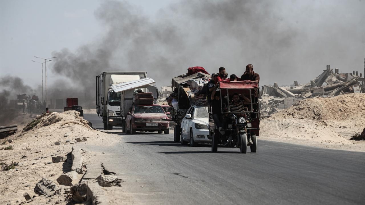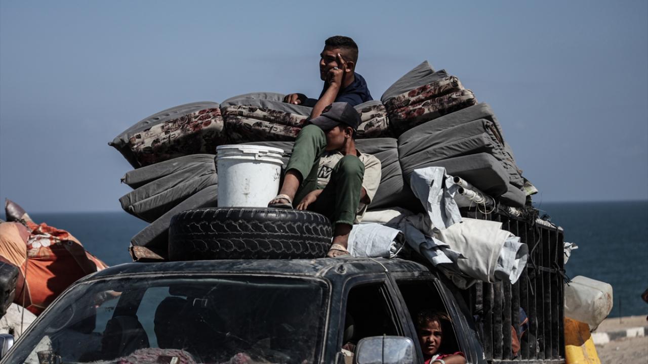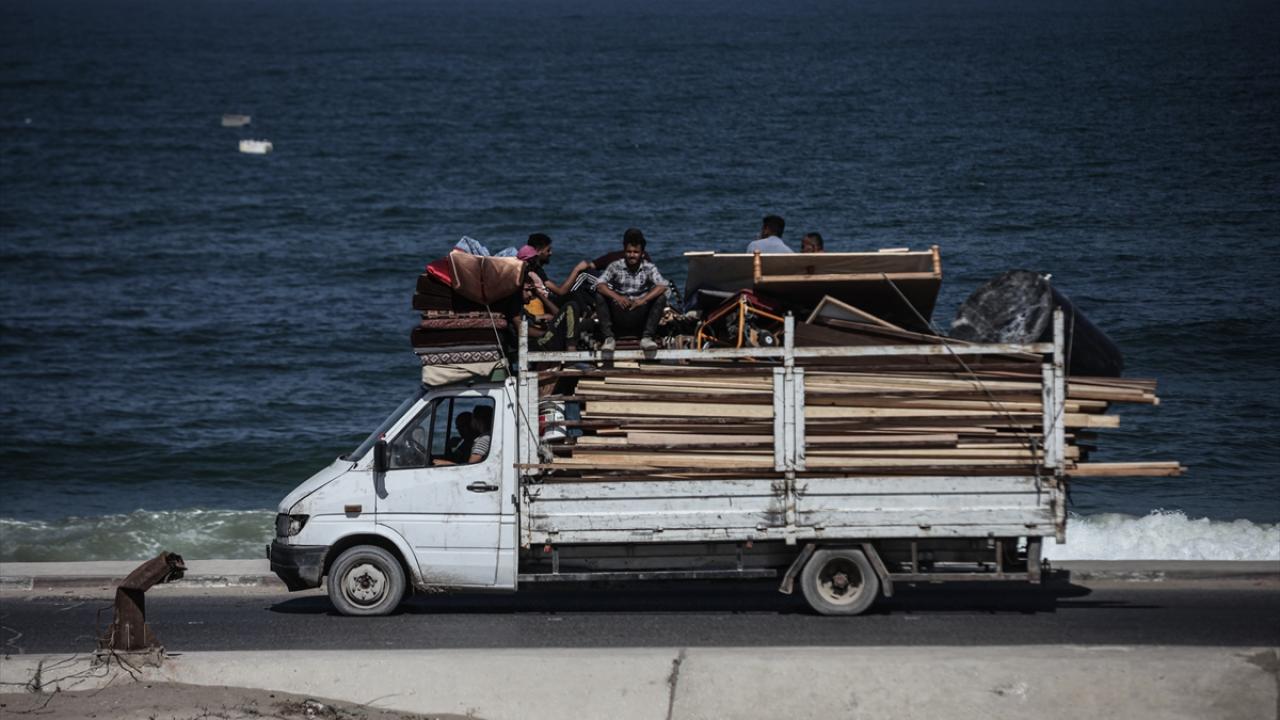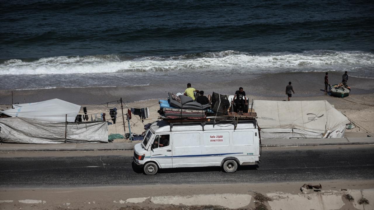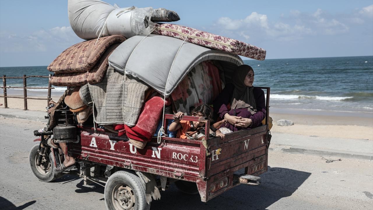İsrail ordusunun Gazze’nin kuzeyine yönelik saldırıları nedeniyle Filistinliler, yanlarında alabildikleri eşyalarla birlikte Nuseyrat Mülteci Kampı’nın batısındaki El-Nuveyri Tepesi üzerinden orta Gazze’ye doğru göç etmeye devam ediyor.