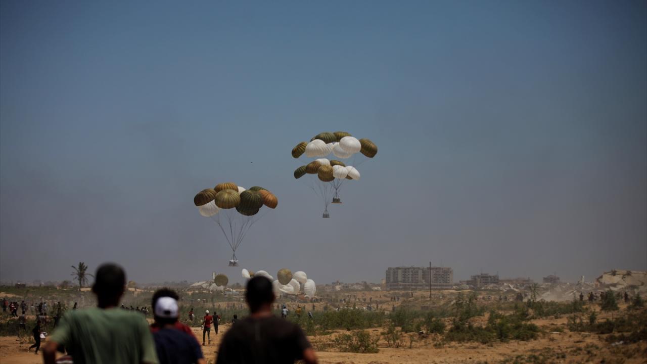 İsrail'in saldırısı ve ambargosu altındaki Gazze Şeridi'ne havadan paraşütle insani yardım malzemesi indirme girişimleri devam ediliyor.