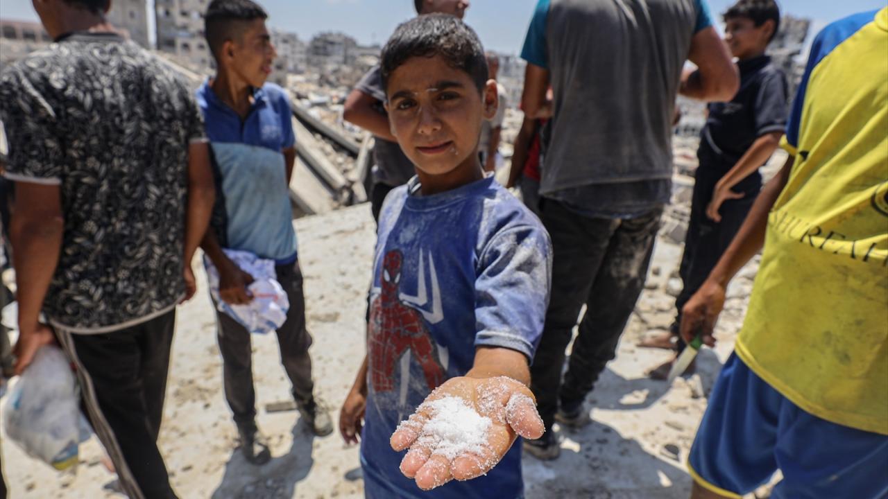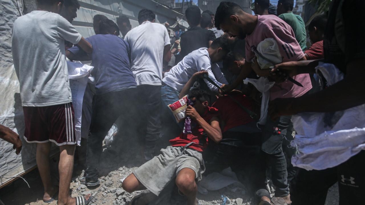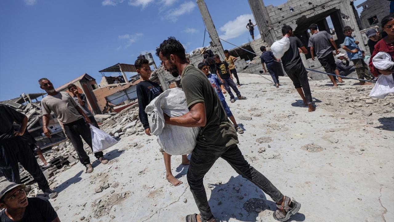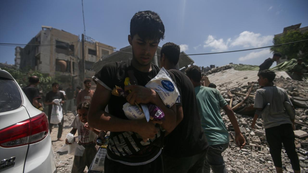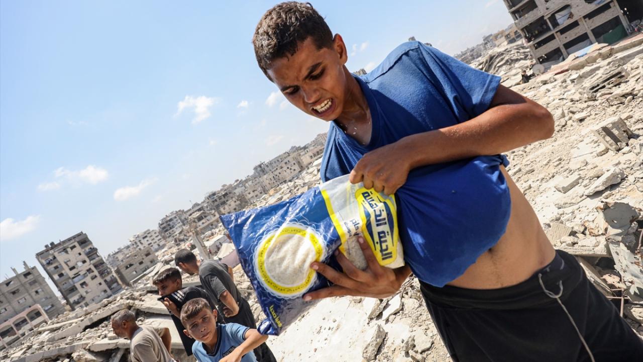 Yardımlardan almak isteyen Filistinliler, bölgeye akın etti.