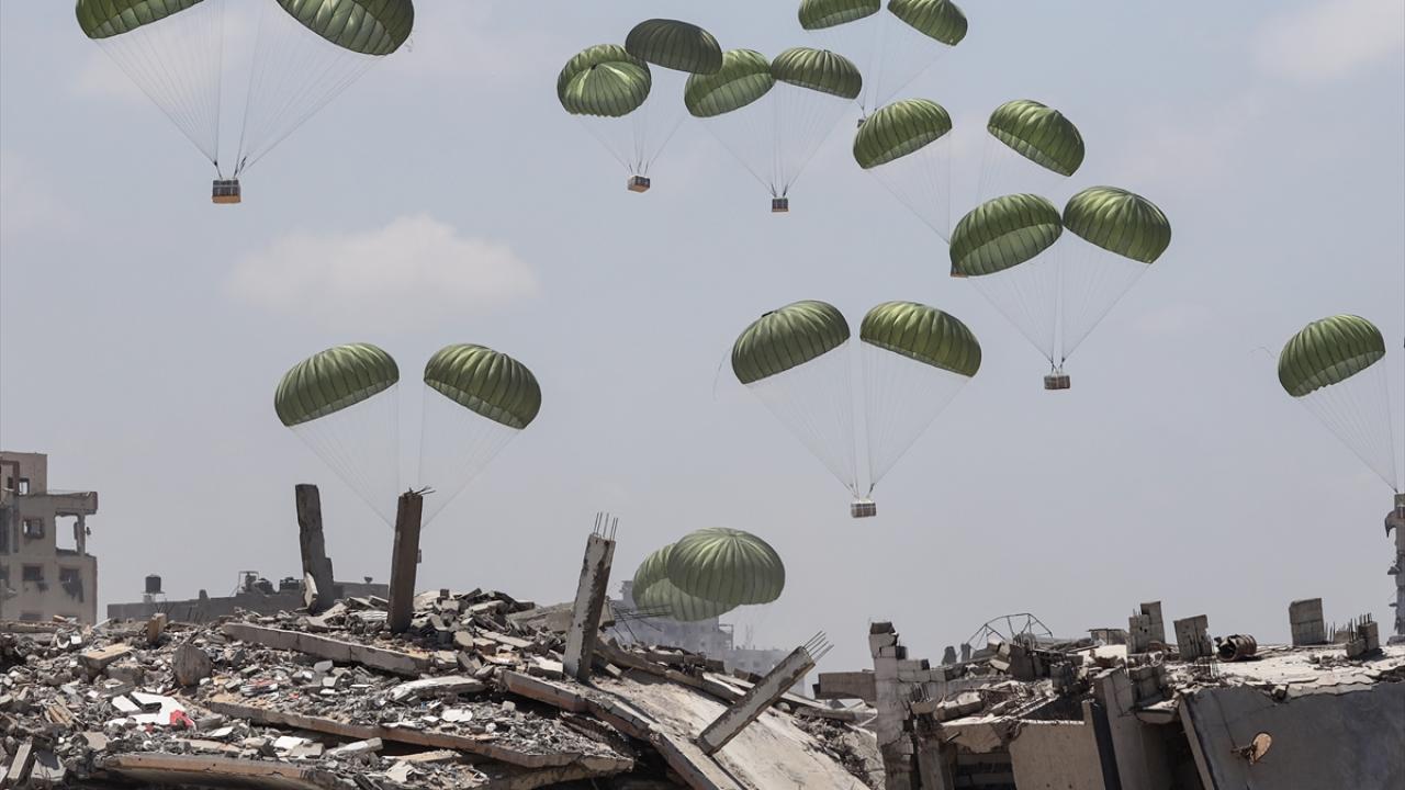 İsrail'in saldırısı ve ambargosu altındaki Gazze Şeridi'ne havadan paraşütle insani yardım malzemesi indirme girişimleri devam ediyor.