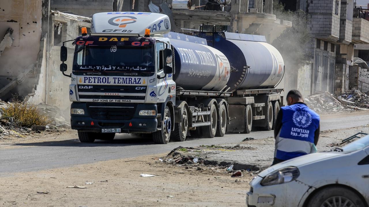Gazze Şeridi’nde sağlanan ateşkesin ardından, bölgeye gönderilen sınırlı miktardaki insani yardım ve yakıt, Refah’taki Kerm Ebu Salim Sınır Kapısı’ndan giriş yapmaya devam ediyor.
