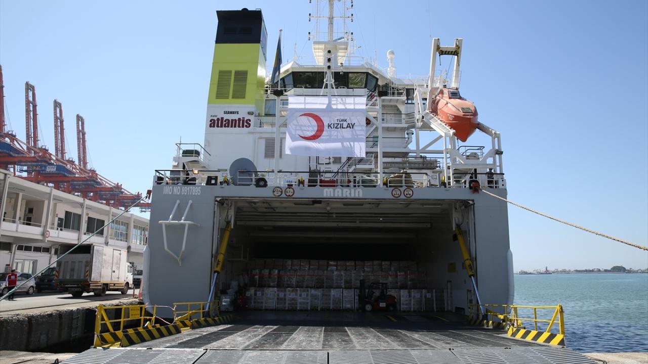Türk Kızılay tarafından Gazze'ye ulaştırılması için hazırlanan 3 bin 774 ton insani yardım malzemesini taşıyan gemi, Mersin Uluslararası Limanı'ndan uğurlandı.