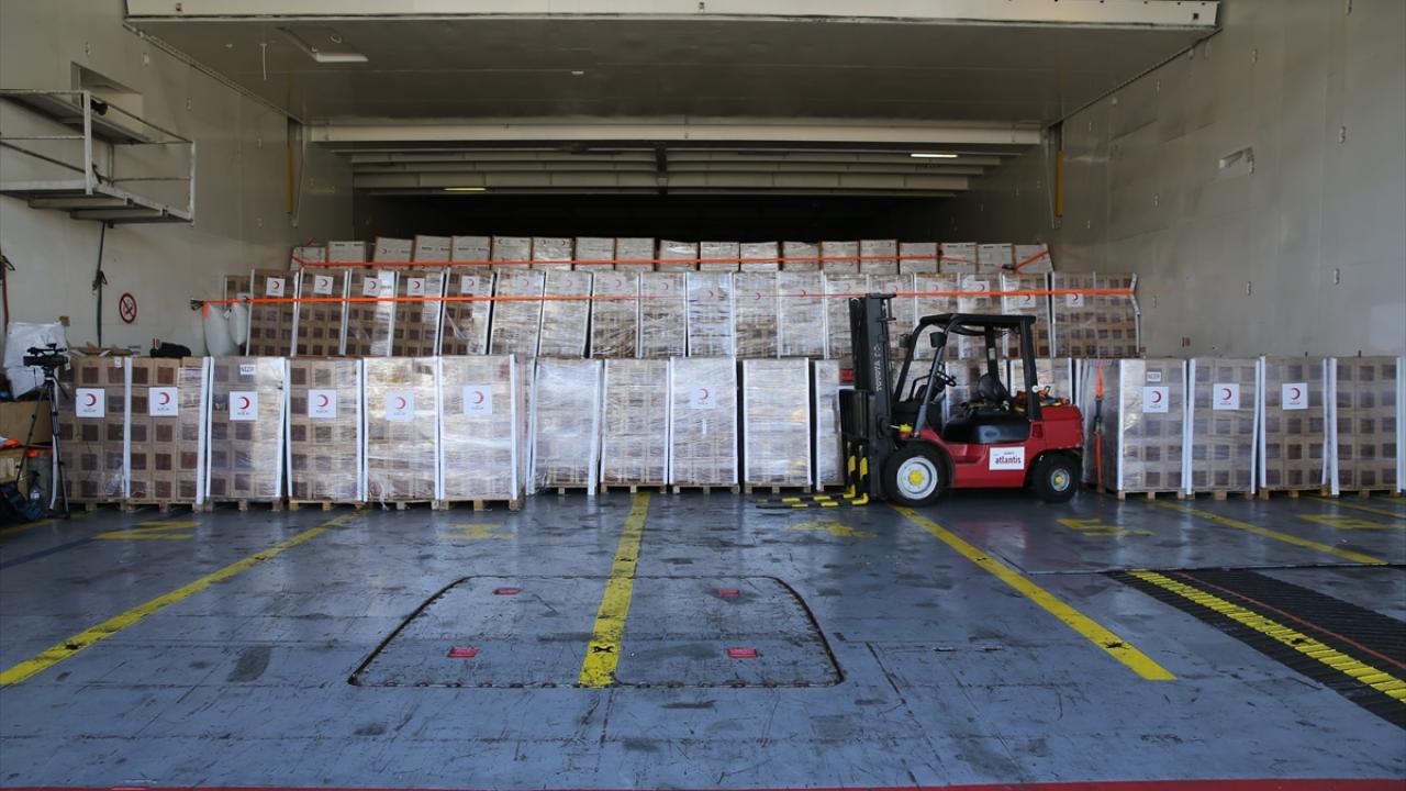 İsrail`in saldırısı altında bulunan Gazze Şeridi`ndeki Filistin halkıyla dayanışma amacıyla tedarik edilen gıda, bebek malzemeleri, uyku tulumu ve glütensiz ürünlerden oluşan 3 bin 774 tonluk yardımın yüklendiği gemide hazırlıklar tamamlandı.