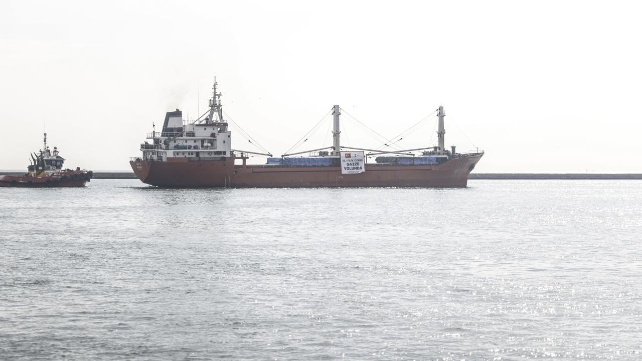 Gazze'ye yardım taşıyan 18. "İyilik Gemisi" Mersin Limanı'ndan uğurlandı