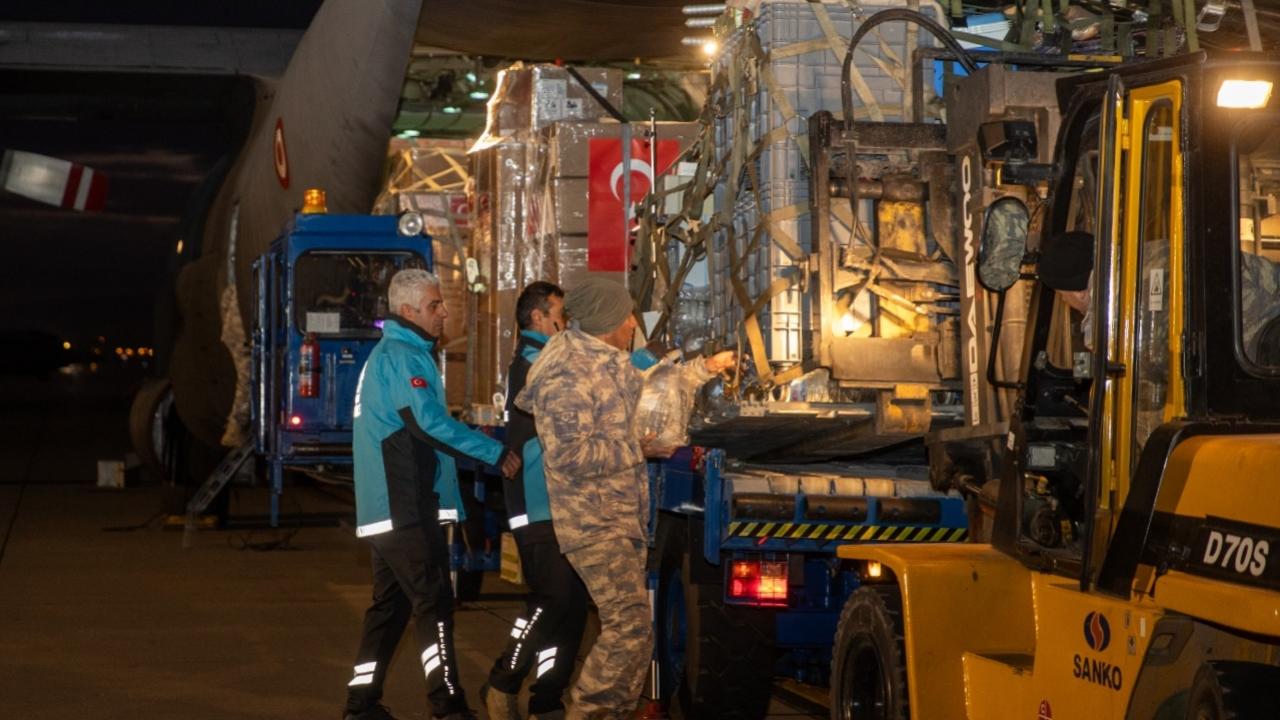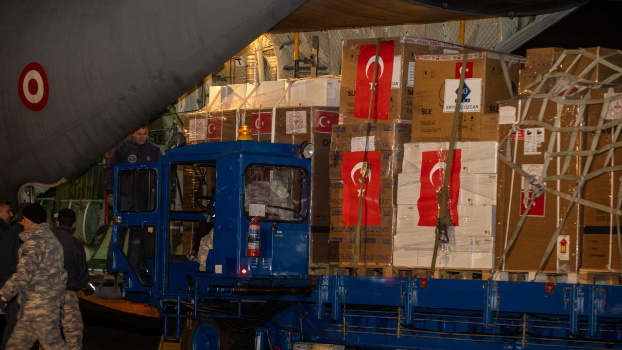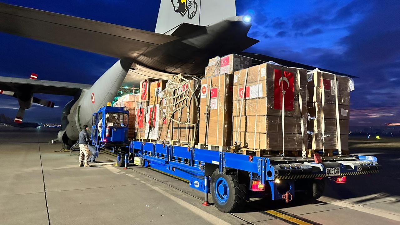 Kayseri Havalimanı`nda yaklaşık 8 ton ilaç ve tıbbi malzeme yüklenen Milli Savunma Bakanlığının Hava Kuvvetleri Komutanlığına ait C-130 Hercules tipi uçak, hazırlıkların tamamlanmasının ardından uzman doktor ve hemşirelerin de arasında olduğu 9 sağlık çalışanıyla saat 08.00`de El-Ariş Havalimanı`na doğru havalandı.
