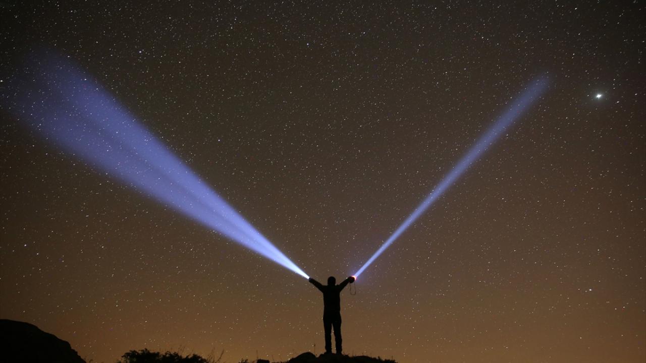 Gece yıldızlar altındaki Nemrut Krater Gölü