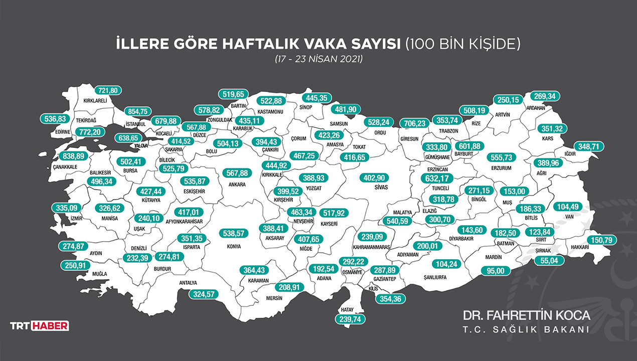 Sağlık Bakanı Fahrettin Koca, 17 - 23 Nisan tarihli illere göre haftalık vaka sayısını açıkladı. Geçen haftaya göre vaka sayısı en çok azalan il Yalova oldu. İşte geçen haftaya göre vaka sayısı azalış gösteren iller...