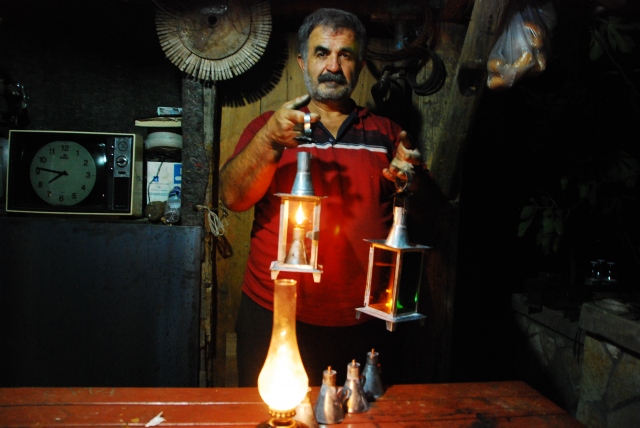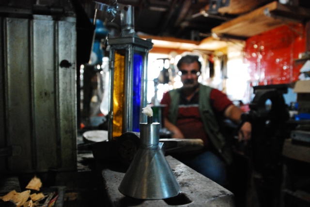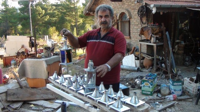 Antalya'nın Akseki ilçesinde demircilik yapan Adem Çetin, güneş enerjisi kullanarak tamamen el işçiliğiyle kandil ve idare lambası üretiyor.