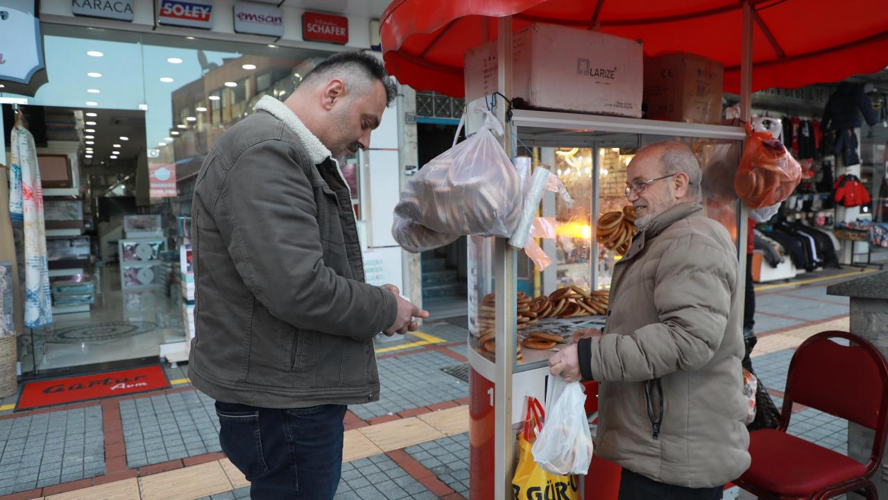 mekli olduktan sonra simit sattığını belirten Uçar, "Her sabah evden çıktıktan sonra simit tezgahını açıyorum. Hem evimi geçindiriyorum hem de gündüz boş vakitlerimi güvercinlere simit vererek geçiriyorum. Günde iki üç defa yanıma gelirler, bildiğin arkadaş gibi olduk." dedi.