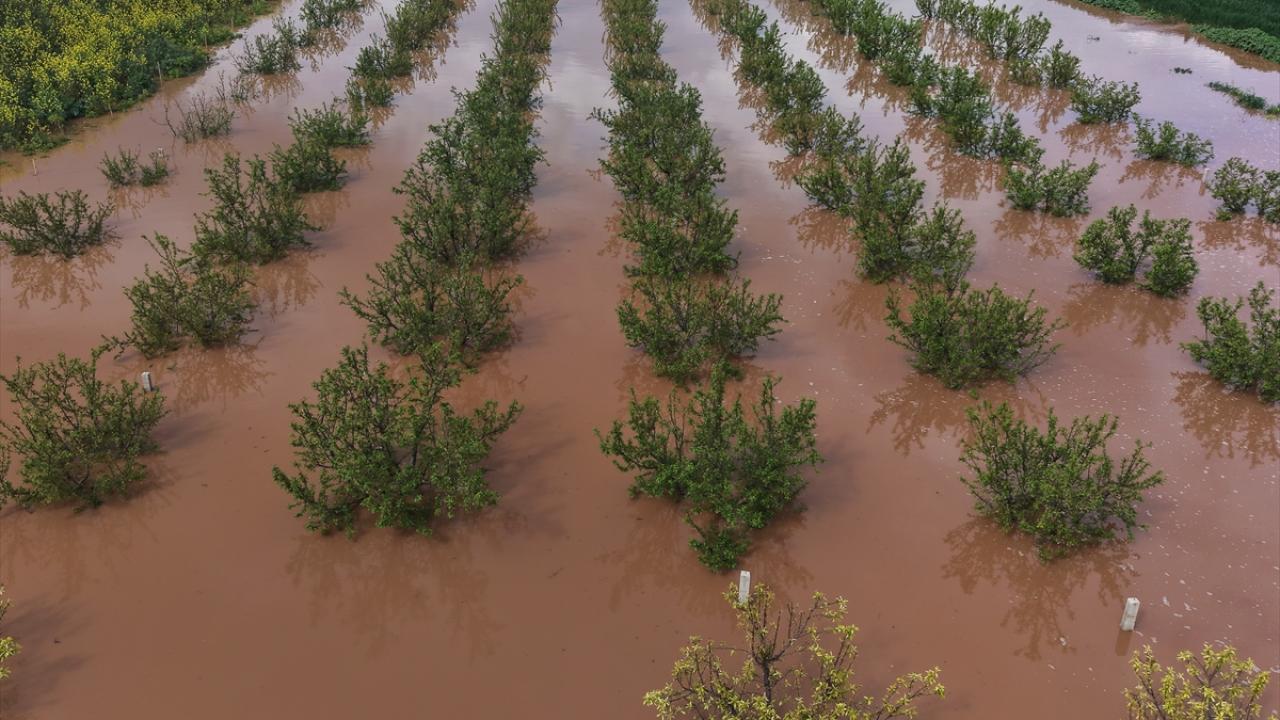 Taşkın nedeniyle üzüm bağlarının yanı sıra erik, kiraz ve şeftali bahçeleri ile biber, domates ve mısır ekimi için hazırlanan tarlalar zarar gördü.