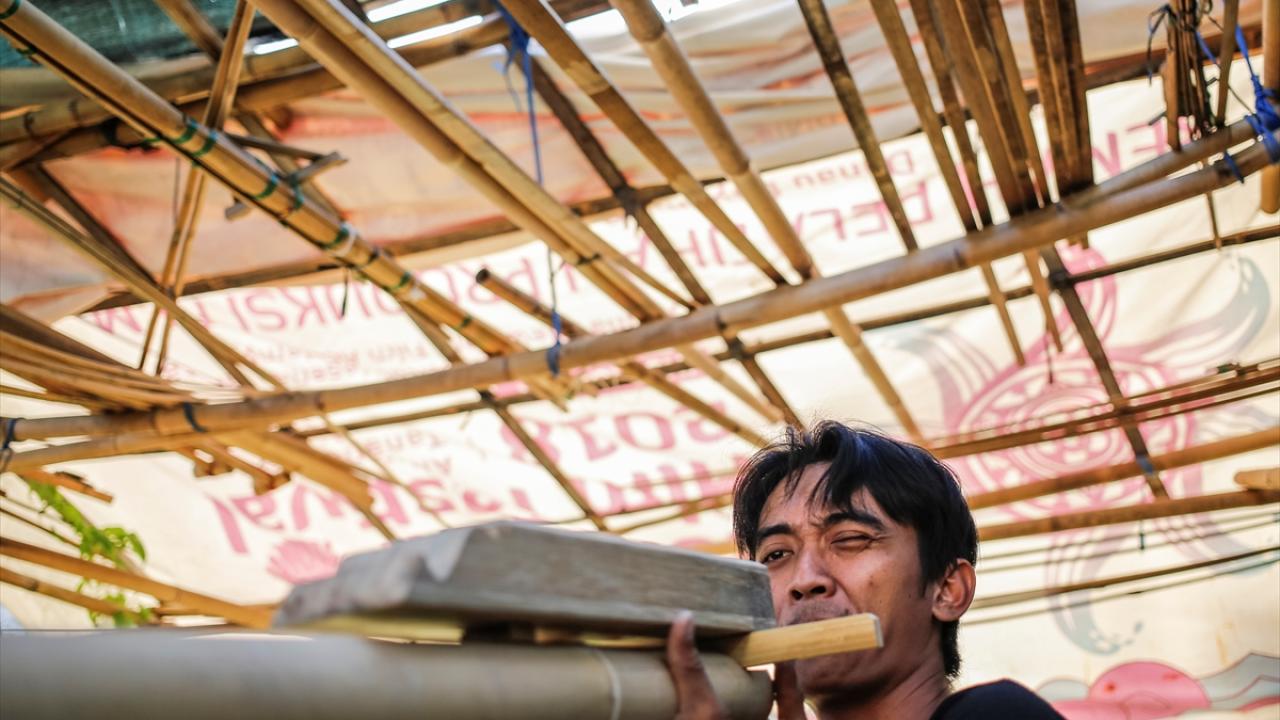 Devasa uçurtmalarını omuzlarında şenlik alanına taşıyanlar, izleyicilerin ilgisini çekti.