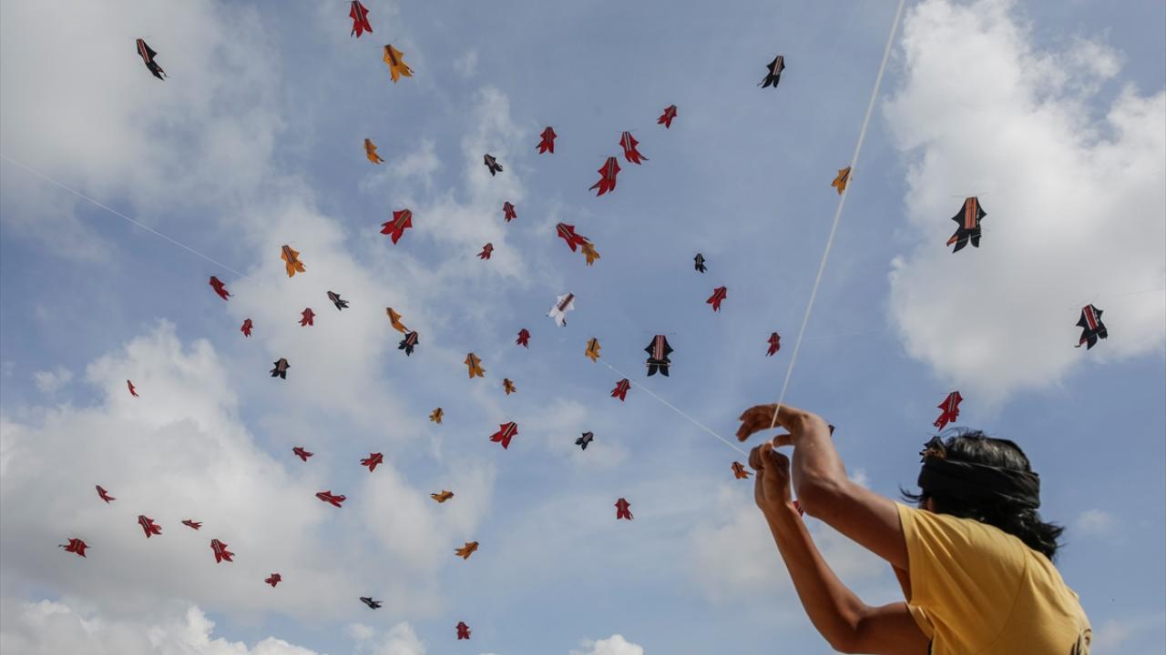 Nüfusun büyük bir kısmını Hinduların oluşturduğu Bali Adası`ndaki şenlikte bazılarının uzunlukları 10 metreyi bulan, birbirinden ilginç uçurtmalar gökyüzüne bırakıldı.