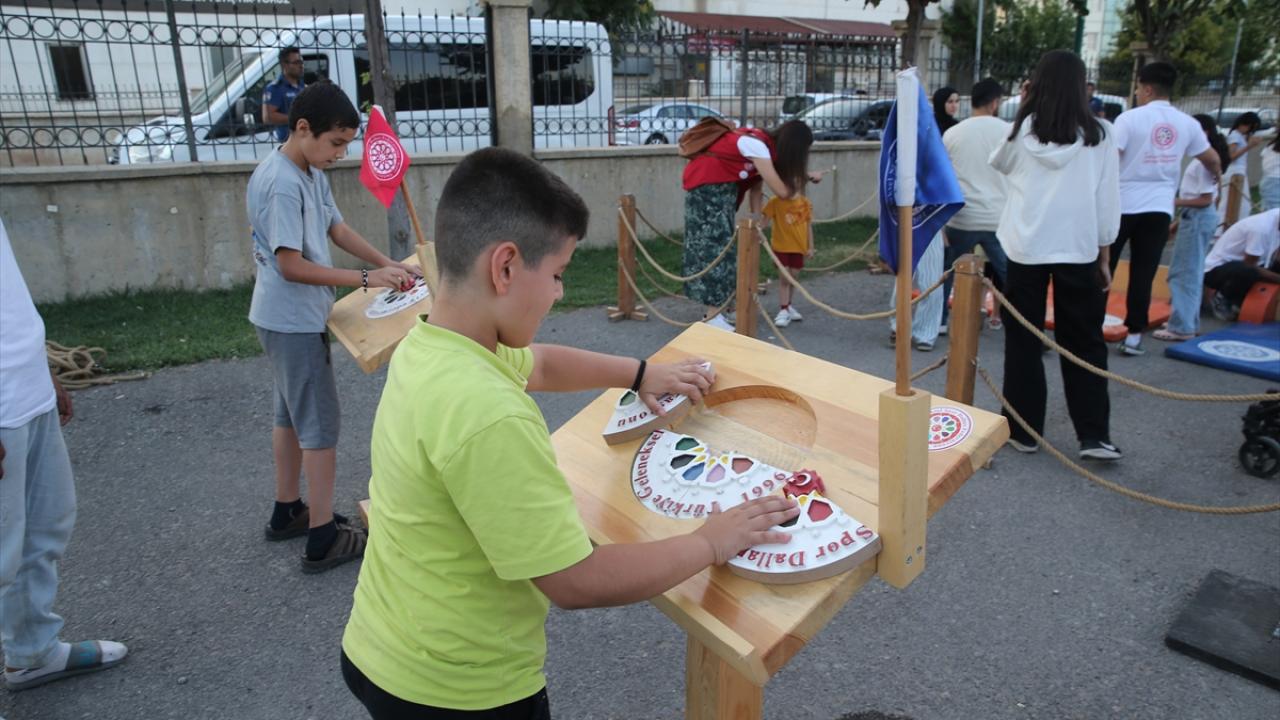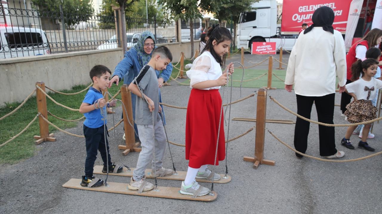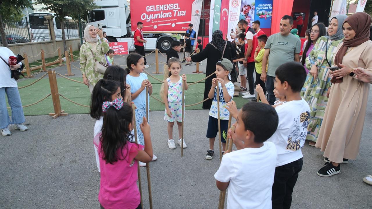 Merkezdeki Göletli Park`ta konuşlandırılan tırda bir araya gelen çocuklar, geleneksel oyunları oynama fırsatı buldu.