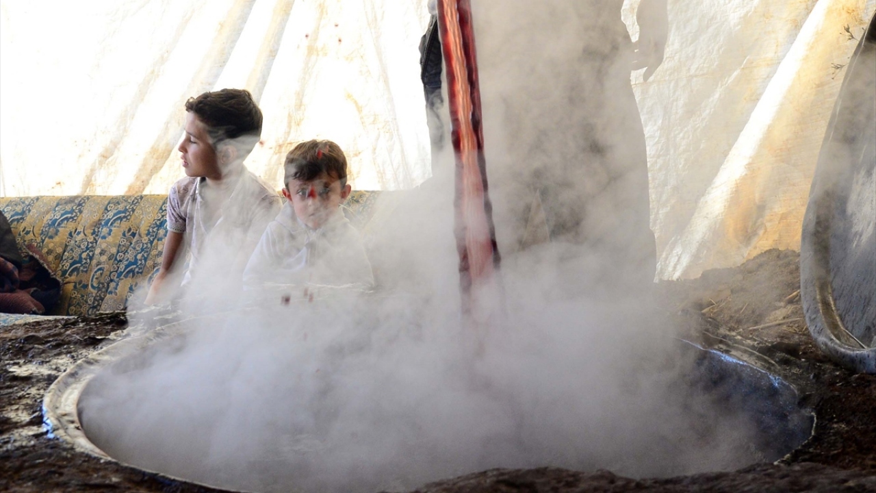 Daha sonra ocakların üzerinde 5 saat kaynatılan üzüm suyu, meşakkatli sürecin ardından pekmeze dönüştürülerek tüketime hazır hale getiriliyor.