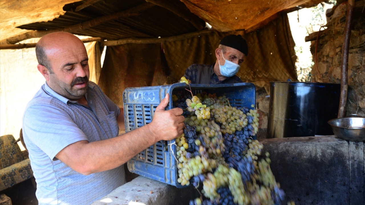 Sait Yıldırım da bağlarda yetiştirdikleri üzümün bir kısmını sattıklarını, bir kısmını da pekmeze dönüştürdüklerini kaydederek, "Sabah erkenden ailece bağa gidip üzüm topluyoruz. Katırlara yüklediğimiz üzümleri eve getiriyoruz. Suyunu sıkarak pekmez yapıyoruz. Büyüklerimizden öğrendiğimiz şekilde üretiyoruz. Siyah ve beyaz üzüm kullanıyoruz." dedi.