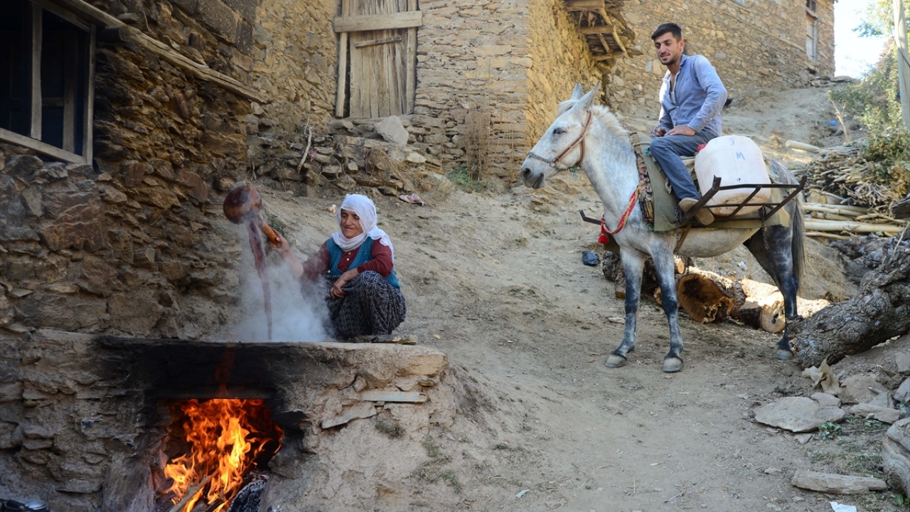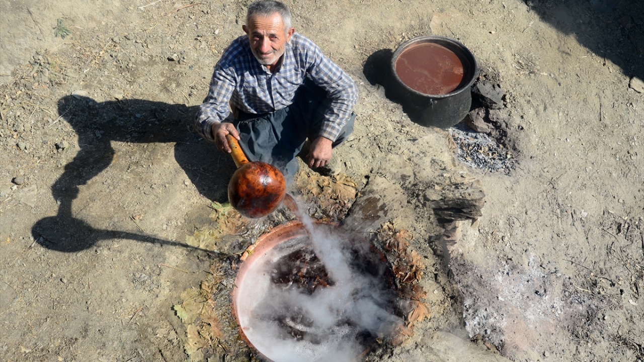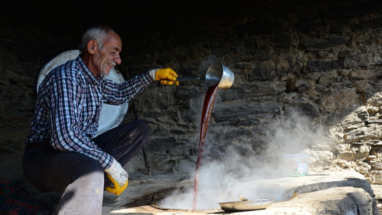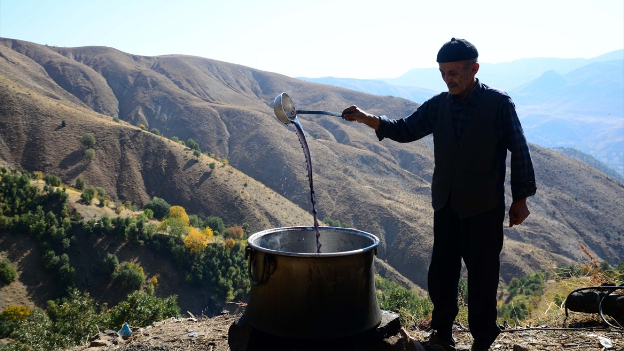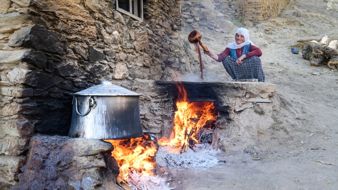 Bitlis'in Hizan ilçesinde dağların dik yamaçlarındaki bağlarda yetiştirilen üzümler, asırlardır geleneksel yöntemlerle pekmeze dönüştürülüyor.