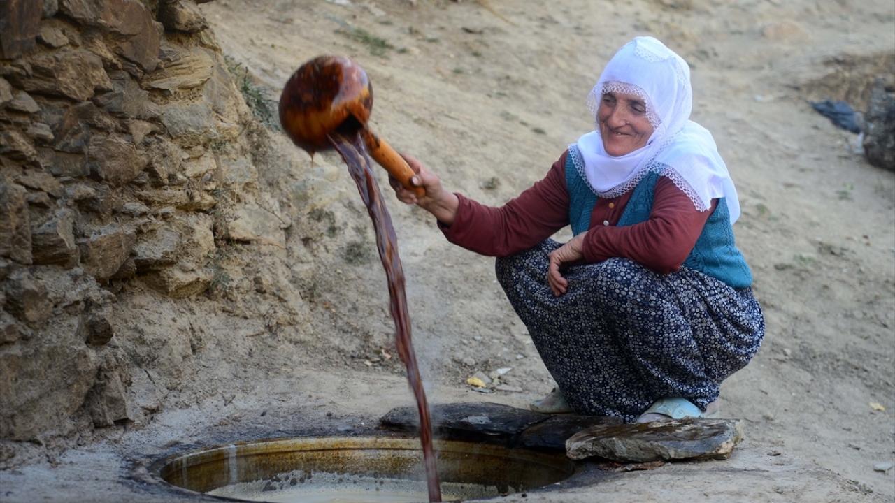 "İlk önce bir kazanda ısıtıyoruz. Pekmezin mayası topraktır. Üzüm suyuna toprak katıyoruz. Mayalandıktan sonra tekrar kazana alıp 5 saat kaynatıyoruz. Bu iş dededen babaya, babadan bize, bizden çocuklara kaldı. Bu işi dedelerimiz de yapıyordu. Kurulduğundan beri köyümüzde pekmez yapılıyor. Bağlarımız aşağıda olduğu için dik yamaçlardan katırlarla üzümleri taşıyoruz. Kadınlarımız ve çocuklarımızla üzümleri topluyoruz. Sonra tüm süreçleri tamamlayarak pekmezi elde ediyoruz."
