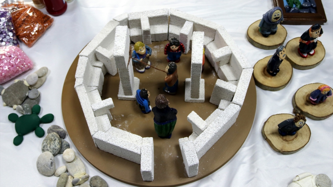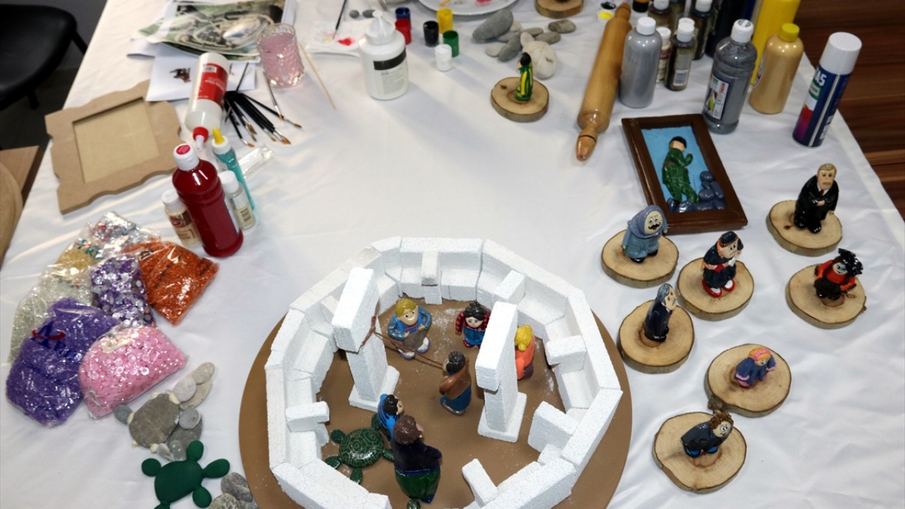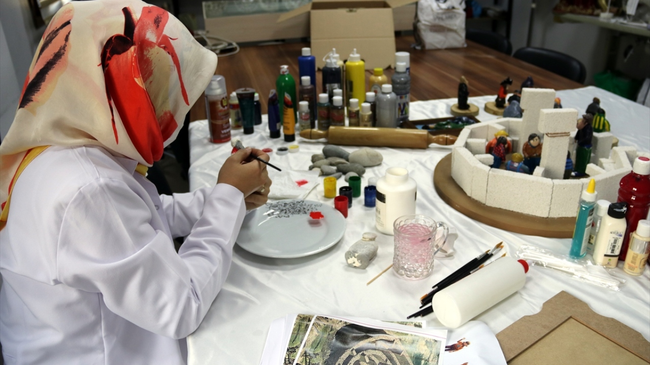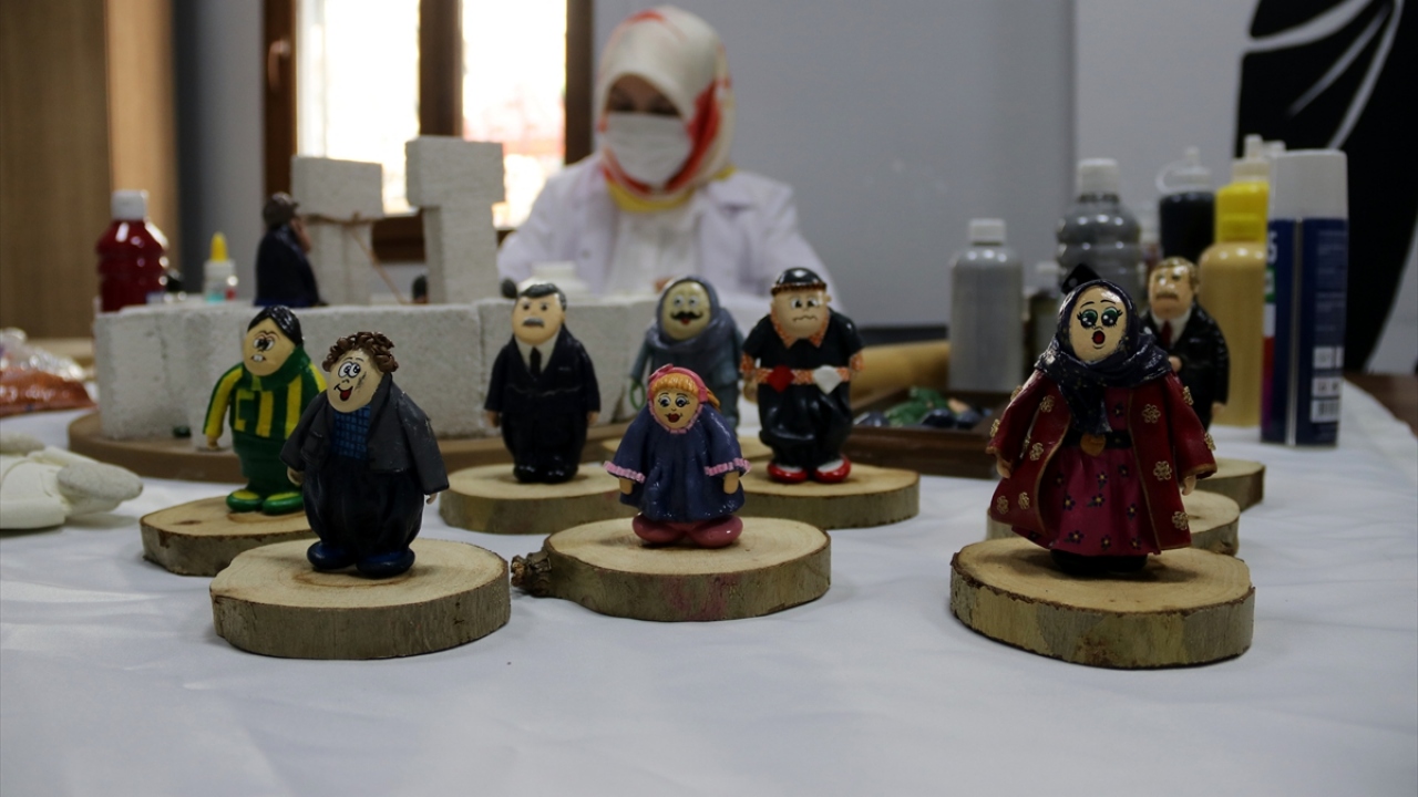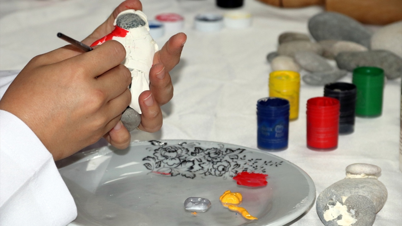 Kursta, tutkalla yapıştırdıkları taşları seramik hamuruyla kaplayan, ardından da boya ve vernikle süsleyen kadınlar, taşları yöresel kıyafetli bebeklere dönüştürmeye başladı.