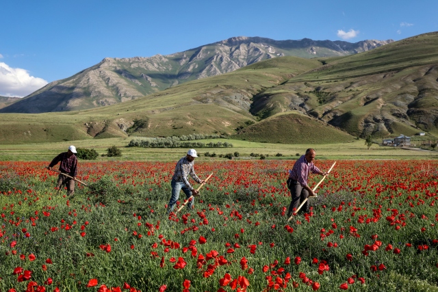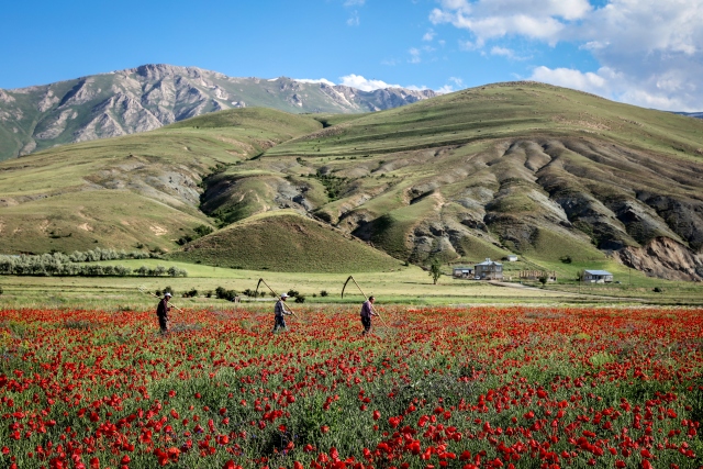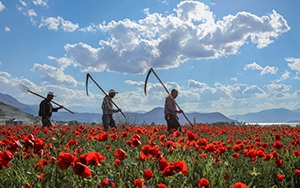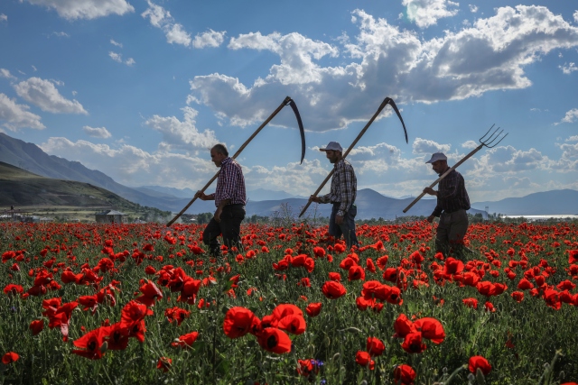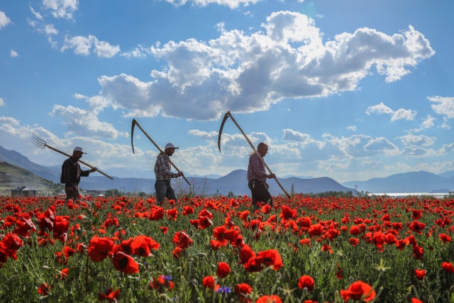 Türkiye'de ilkbahar mevsiminde çoğu bölgede doğal olarak yetişen, şiir, efsane ve türkülere konu olan gelincik çiçeği, kırmızı görüntüsüyle Van'daki uçsuz bucaksız tarlalarda görsel şölen oluşturuyor.