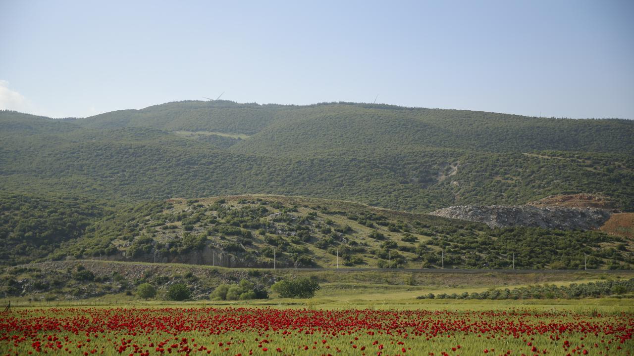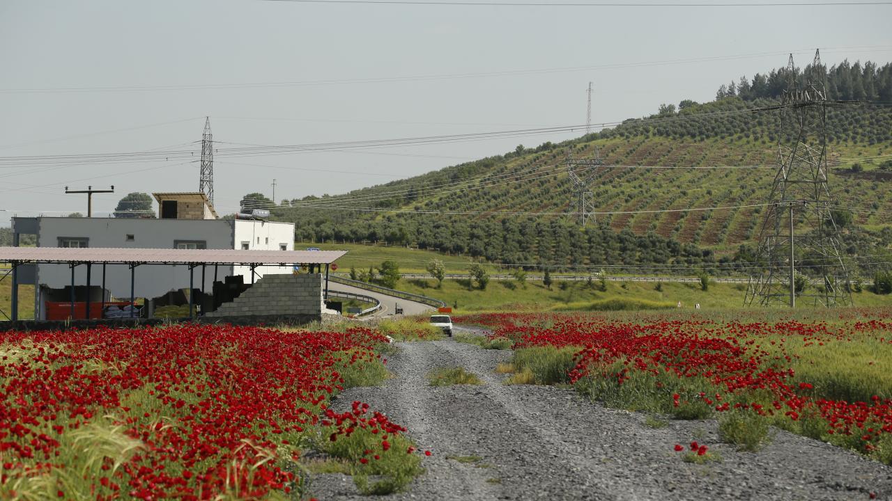 Kahramanmaraş-Gaziantep karayolu kenarlarında tarlalarda yoğun olarak açan gelincik çiçekleri, yolcuların da dikkatini çekiyor.