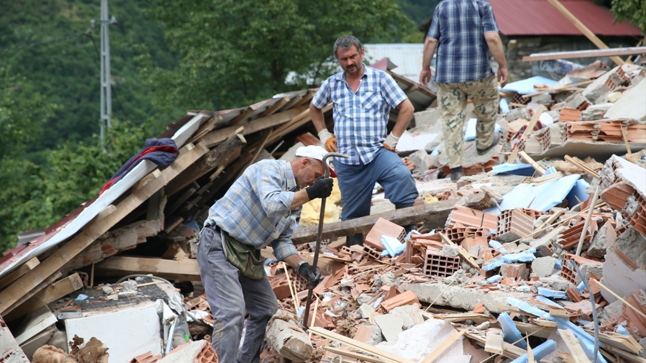 Trabzon'un Köprübaşı ilçesinde dünkü yağışta evden çıkarmak için ikna edemediği kayınpederini kolundan tutarak zorla çıkaran Muazzez Uzunyakup, 3 katlı binanın 5 dakika sonra yıkılması nedeniyle olayın şokunu yaşıyor.