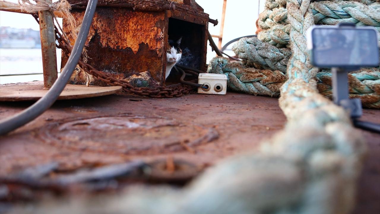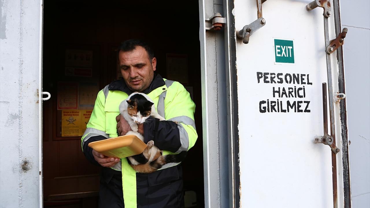 "Lolipop" adını verdikleri yavruya gemide yer hazırlayan Arslan ve Kar, tüm ihtiyaçlarını karşıladıkları kediyle birlikte mesai yapıyor.