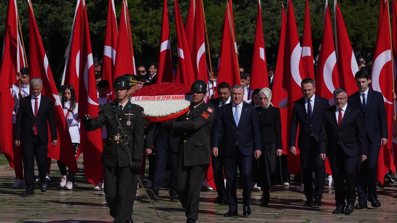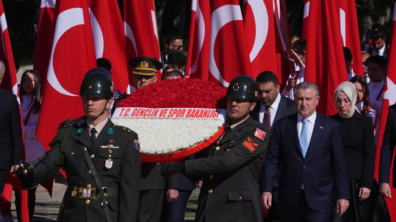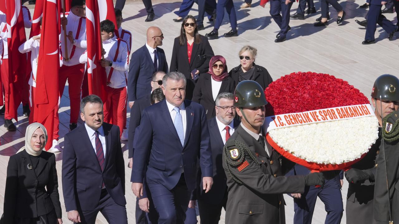 Gençlik ve Spor Bakanı Osman Aşkın Bak, üzerinde `Gençlik ve Spor Bakanlığı` yazılı kırmızı-beyaz karanfillerle süslenmiş çelengi mozoleye bırakmasının ardından saygı duruşunda bulunuldu.