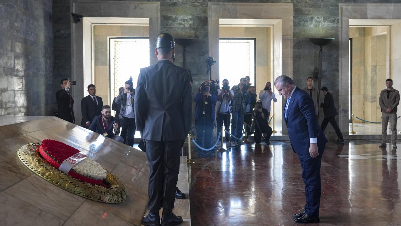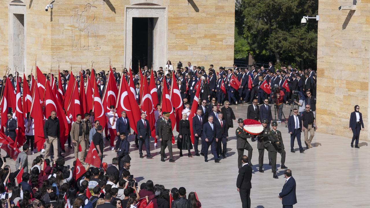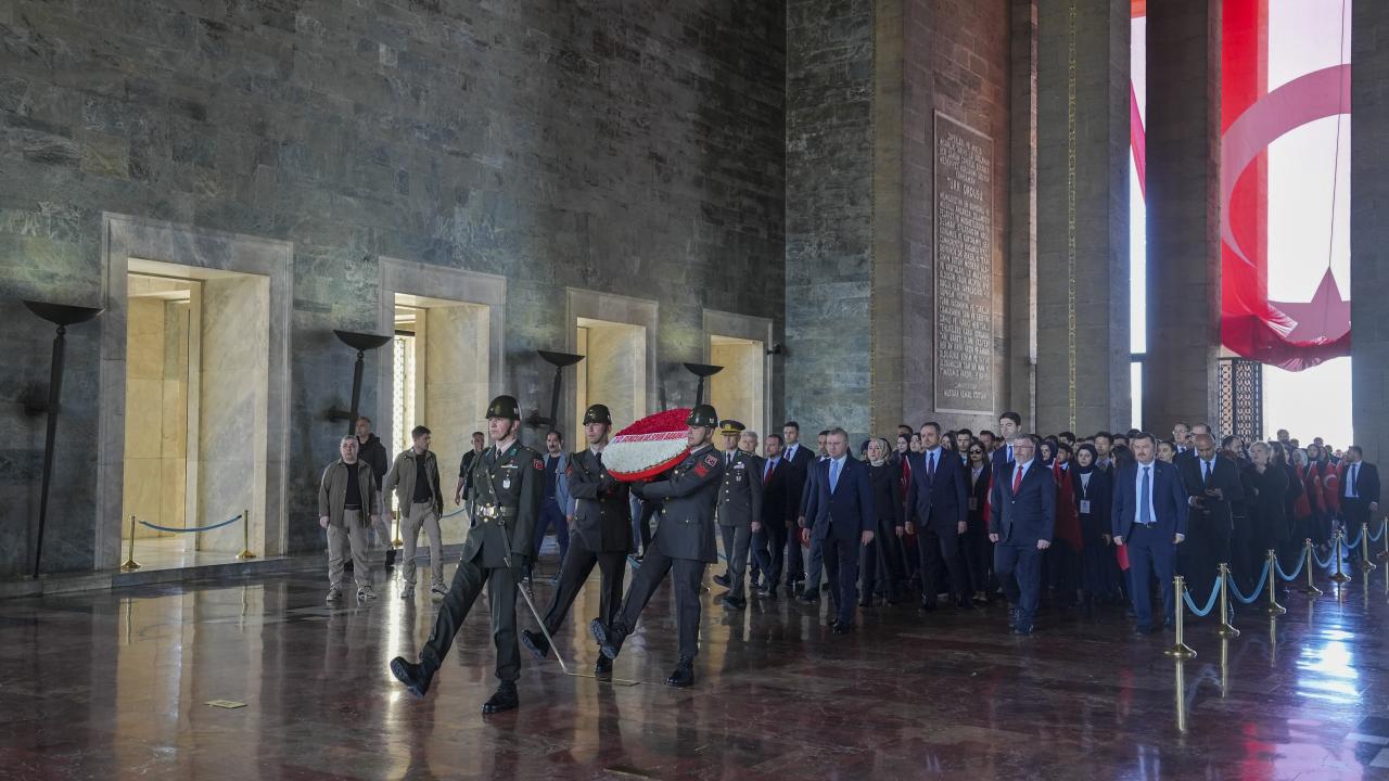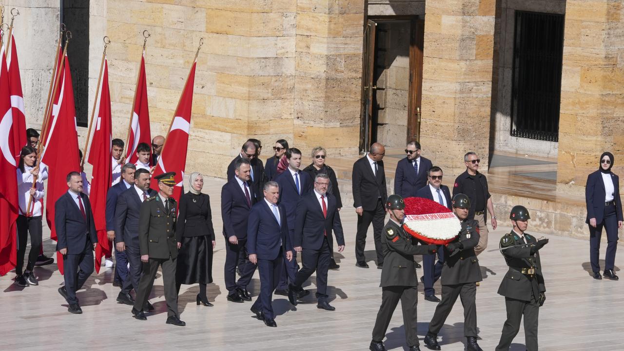 Gençlik ve Spor Bakanı Osman Aşkın Bak, üzerinde `Gençlik ve Spor Bakanlığı` yazılı kırmızı-beyaz karanfillerle süslenmiş çelengi mozoleye bırakmasının ardından saygı duruşunda bulunuldu.