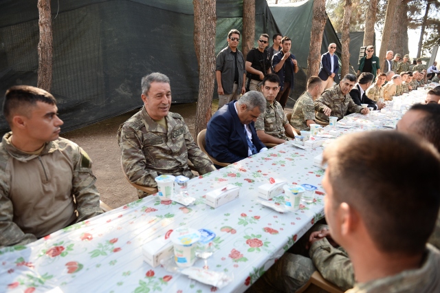 Genelkurmay Başkanı Orgeneral Hulusi Akar, Başbakan Yardımcısı Veysi Kaynak ve kuvvet komutanlarıyla Gaziantep'in Karkamış ilçesindeki Köprübaşı Hudut Karakolunu ziyaret ederek askerlerle bayramlaştı.