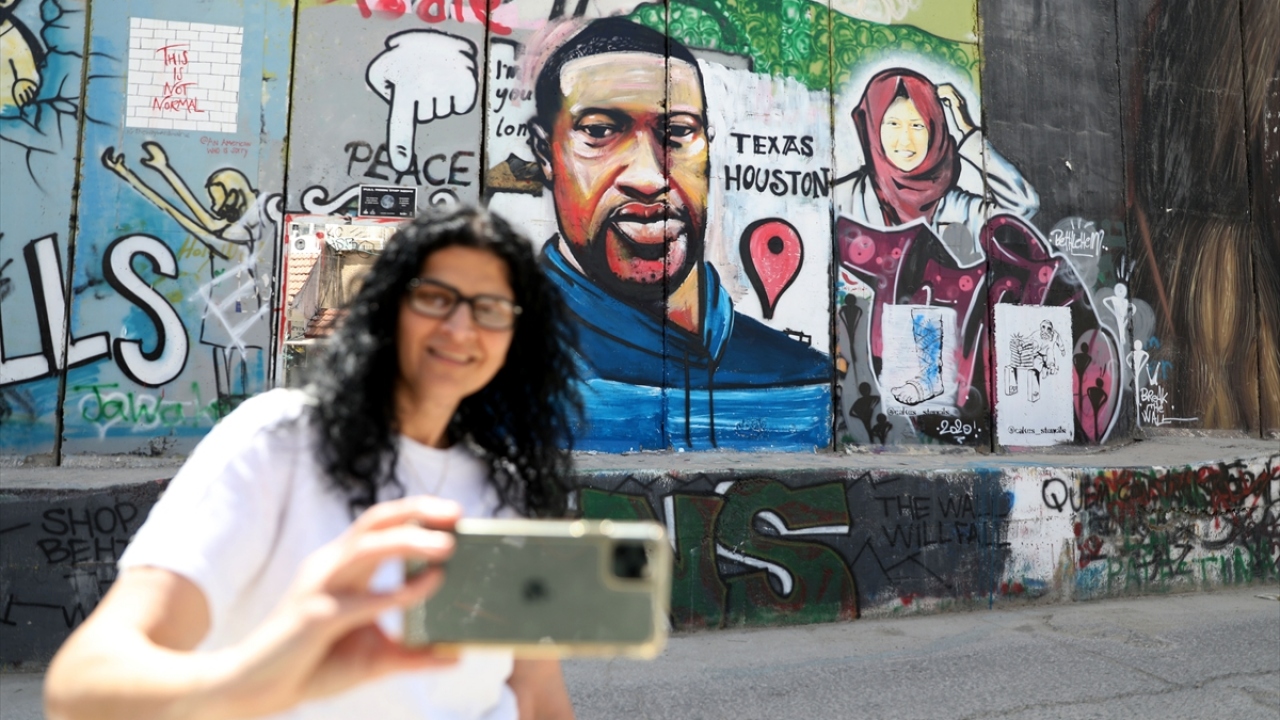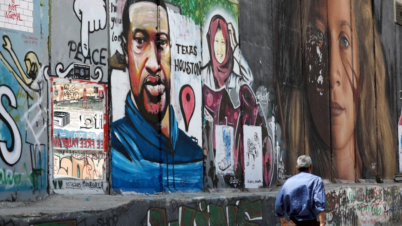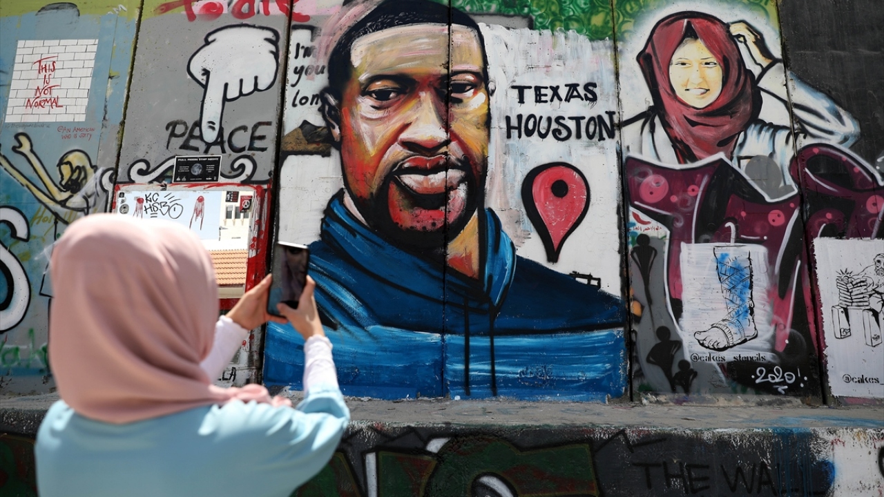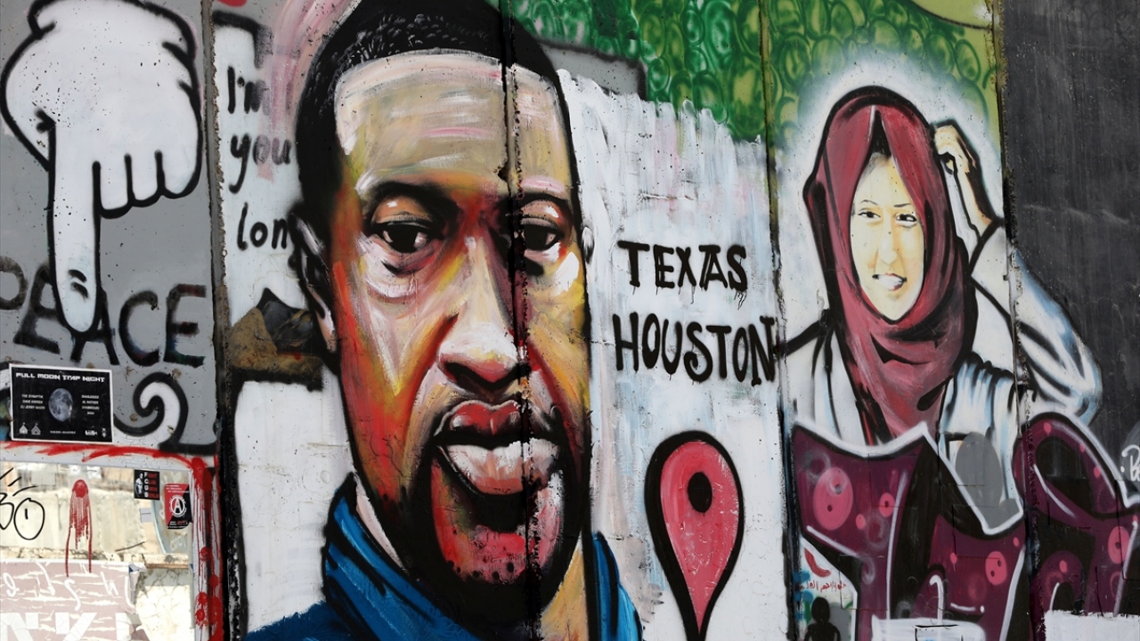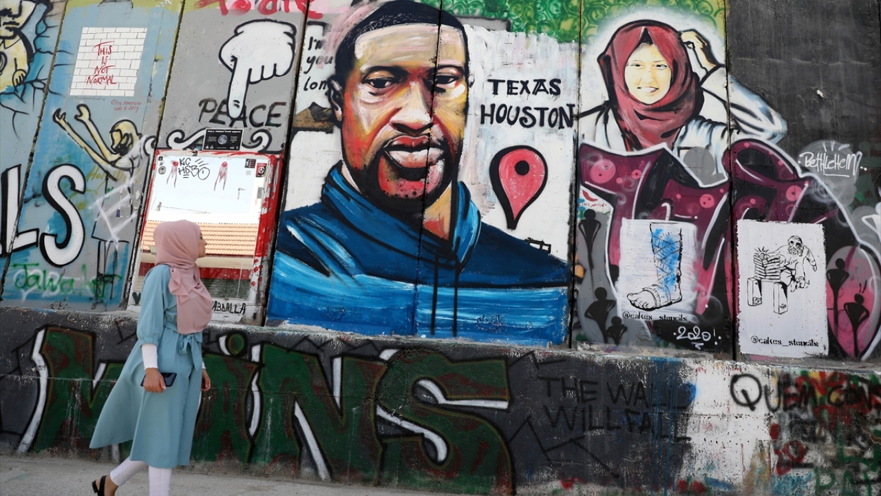 ABD'de polis şiddeti sonucu hayatını kaybeden siyahi George Floyd'un portresi, işgal altındaki Batı Şeria'nın Beytüllahim kentinde yer alan Ayrım (Utanç) Duvarı'na çizildi.