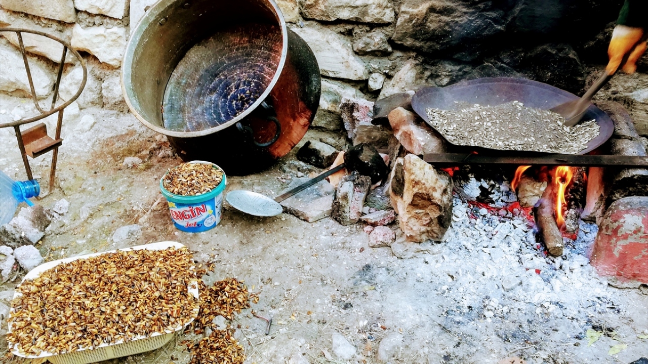 Gercüş ilçesinde evlerde meşe külüyle kaynatılıp, odun ateşinde kumla kavrulan çekirdek büyük ilgi görüyor.