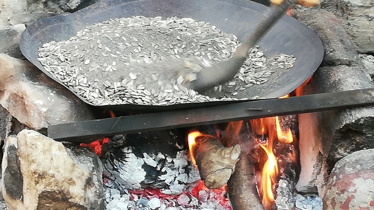 Gercüş'te odun ateşinde kavrulan çekirdek ilgi görüyor