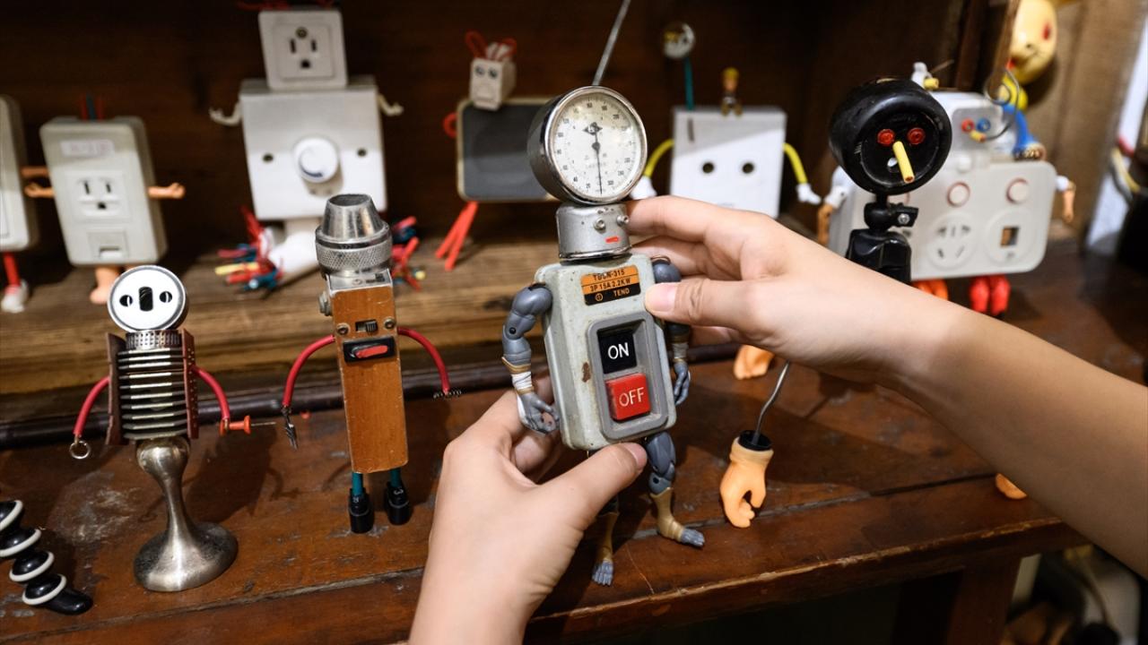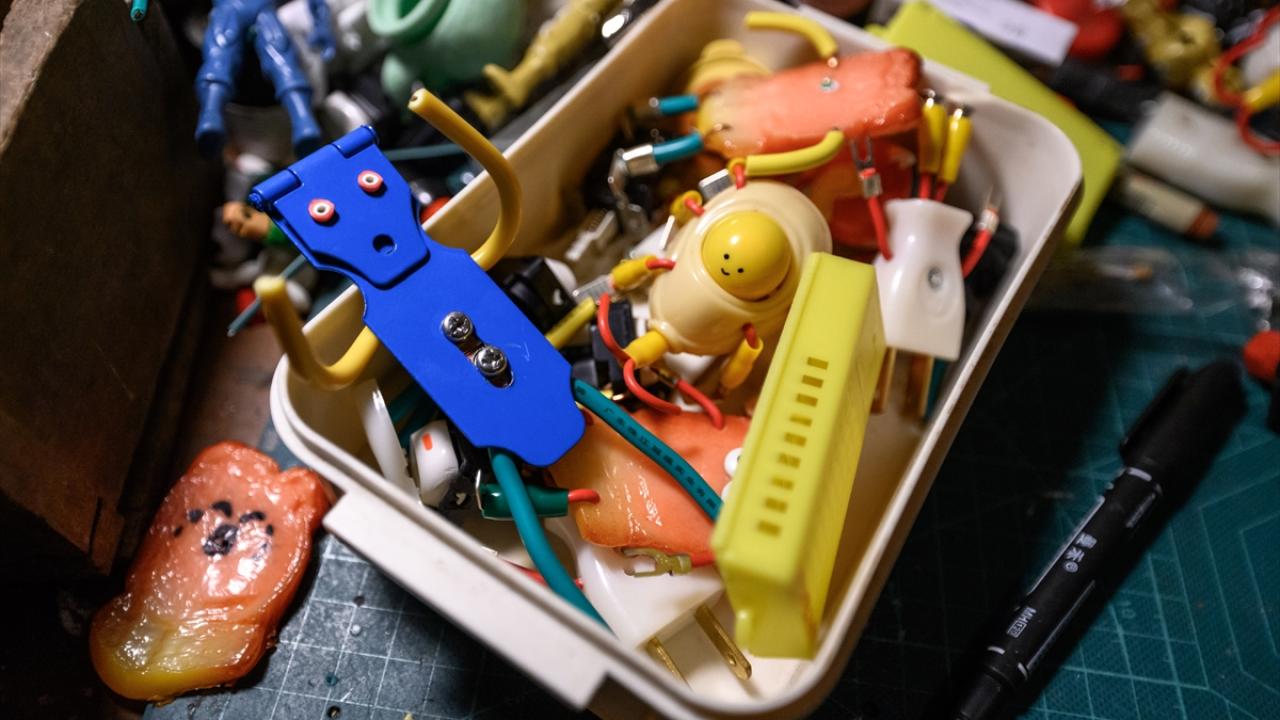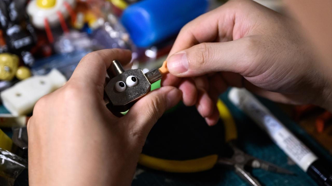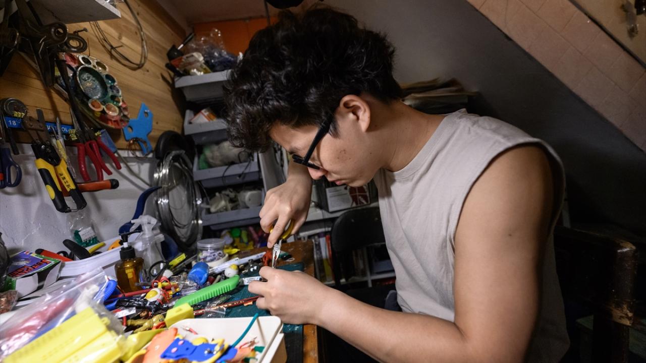 Çin'in Guangdong eyaletine bağlı olan Guangzhou'da bir çift kendilerine ait oyuncak atölyesinde, geri dönüşüm malzemelerinden çeşitli figürlerde oyuncaklar yapıyor.