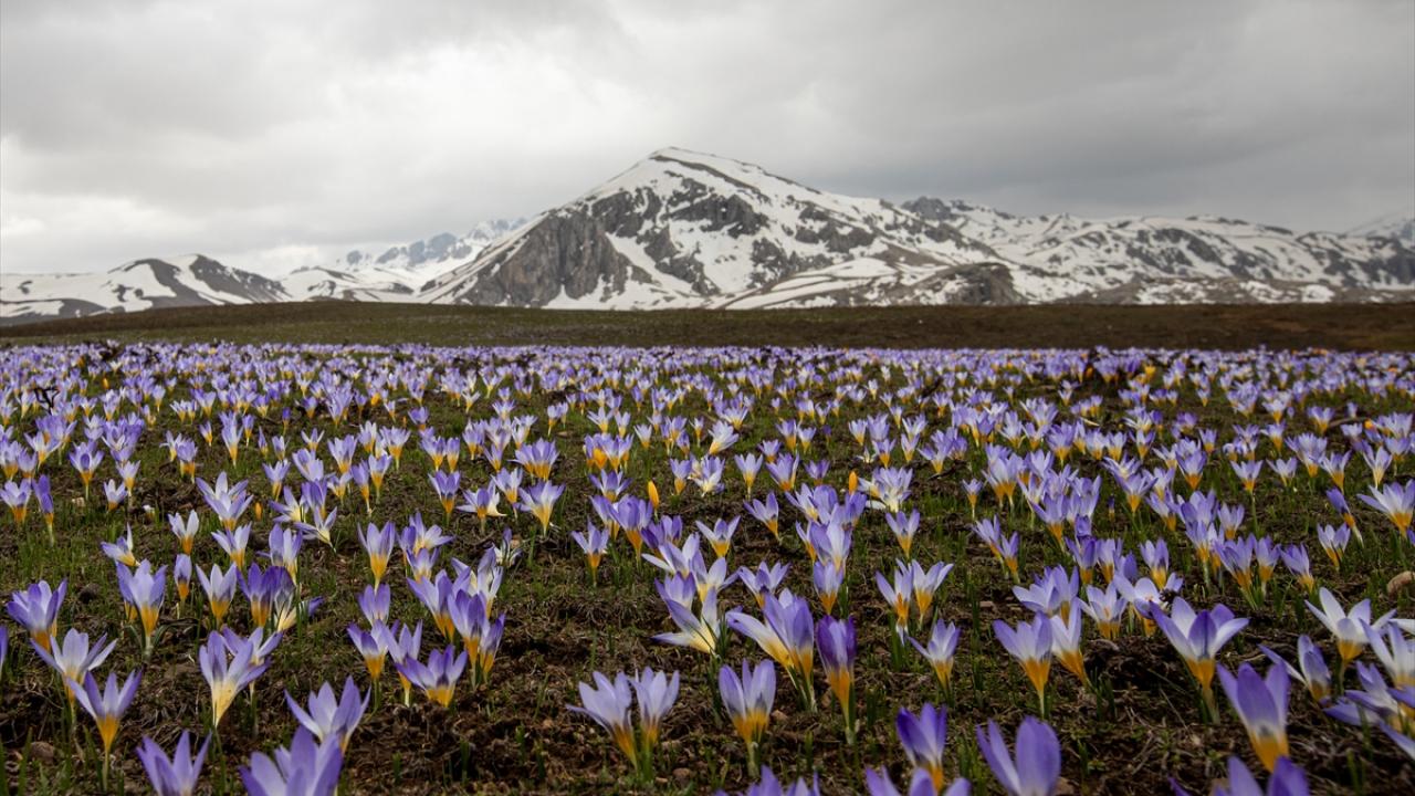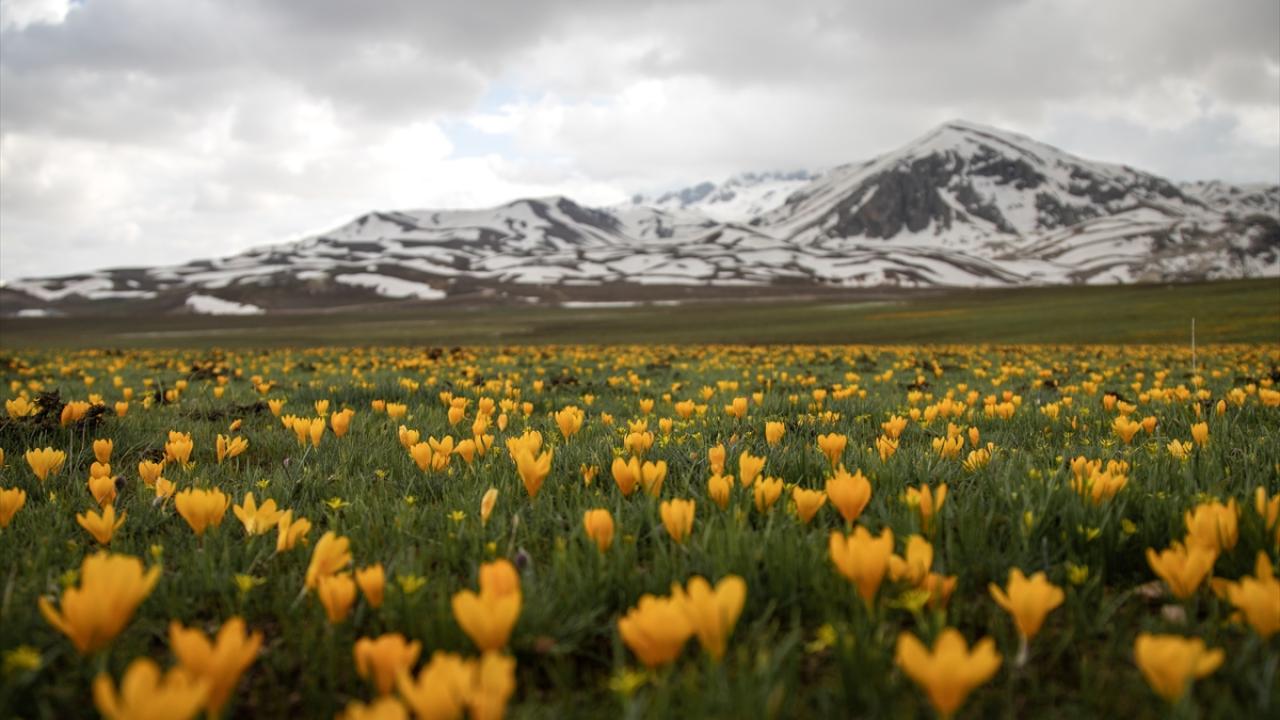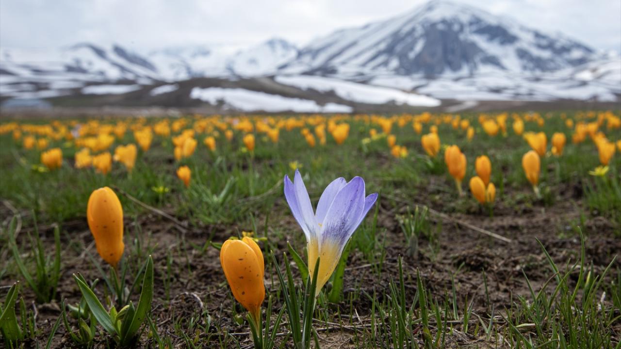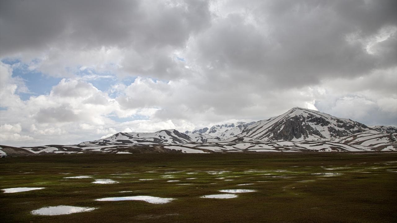 Konya, Karaman ve Antalya illeri arasında sınır çizgisi çizen Geyik Dağları'nın beyaza bürünen zirvelerinde kış adeta devam ederken, eteklerinde ise bahar mevsiminin renkleri görülüyor.